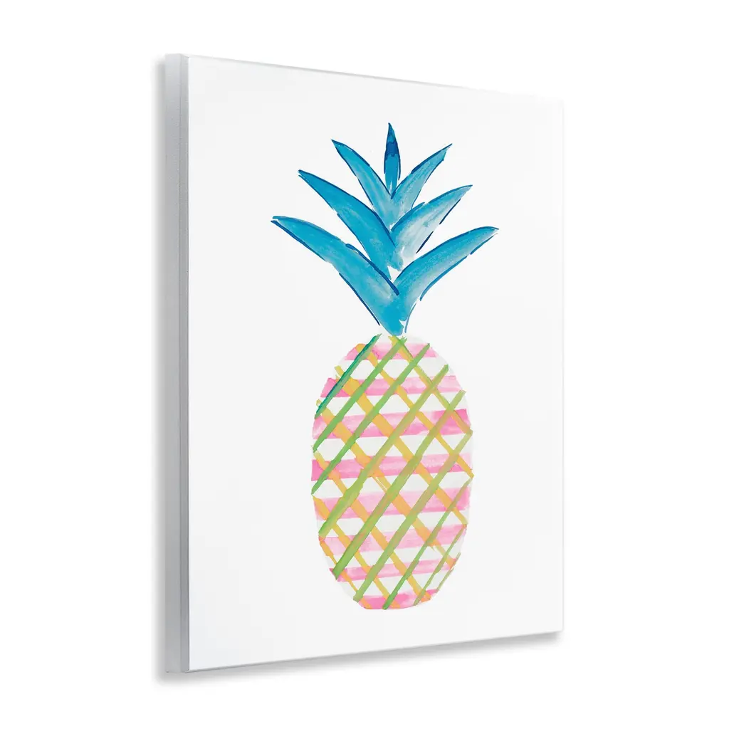 Our wall plaques start as high-quality lithograph prints mounted on durable 0.5-inch thick MDF wood. Each piece is hand finished and comes with a fresh layer of white foil on the sides to give it a crisp, clean look. Plaques arrive ready to hang without installation and come with removable plastic corners to keep them from damage in transit. Stupell Wall Art is made in the USA.Features: Dimensions: 11 x 0.5 x 14 InchesWall Art is Ready to Hang with Hardware Free Hanging. No installation required. For Easy Set Up Lean or Layer Artwork on Shelf or Against Wall.All of our wall plaques start off as high quality lithograph prints that are then mounted on durable 0.5 inch thick MDF wood. Each piece is hand finished and comes with a fresh layer of foil on the sides to give it a crisp clean look. Made In USA.Artwork Relates To: Food, Fruit, Pineapple, Plant, Produce, Tropical, Summer, Pattern, PlaidDesign by Julie DeRice
