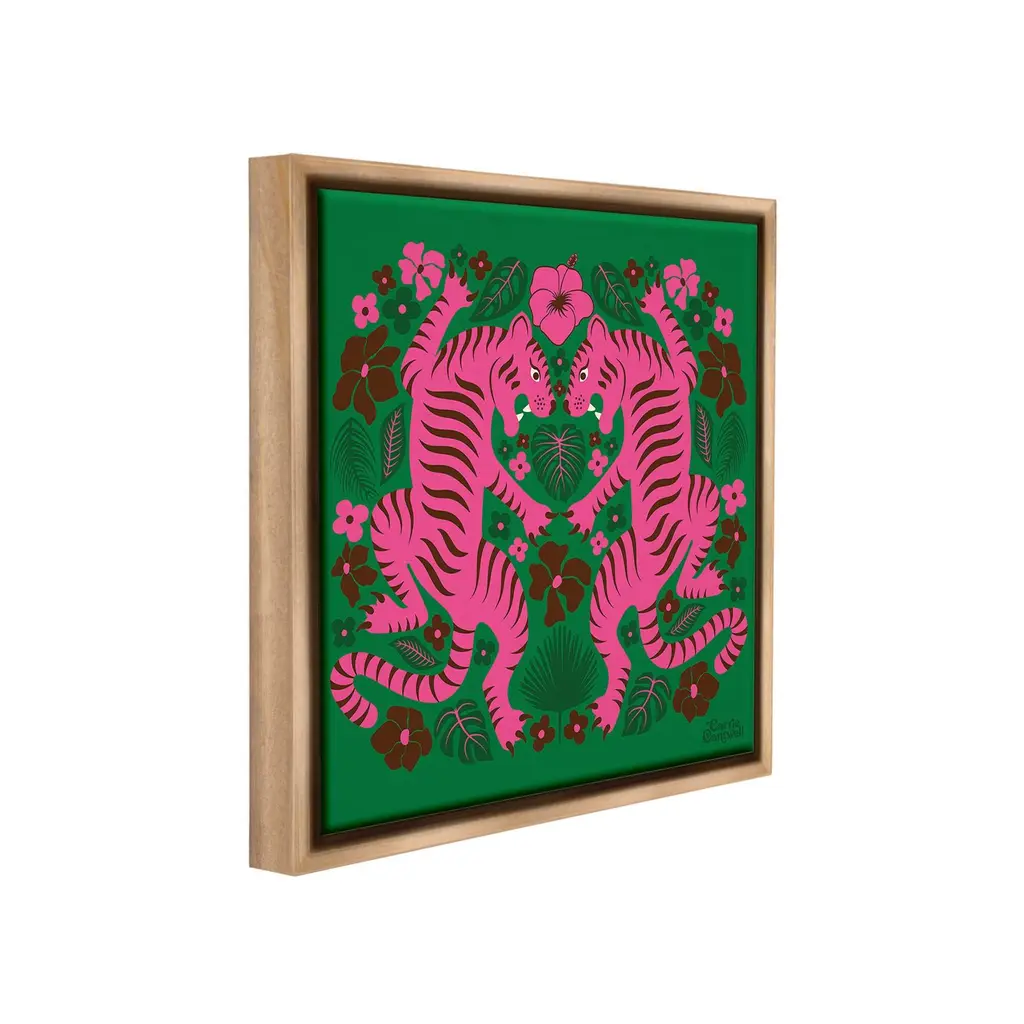 Elevate your home or office to the next level with Stupell Framed Floating Canvas Wall Art. Our premium hand-stretched canvas is mounted securely into a sturdy lightweight frame. The museum-style gap between the wrapped canvas and the box frame gives the illusion of floating artwork. Stupell Wall Art is made in the USA.Features: Dimensions: 18 x 1.7 x 18 Frame, 17 x 1.5 x 17 Canvas ArtFloating Frame Canvas Products are available in sizes 18"x18" and 25"x25". All Floating Frame Canvas Products have a 1.7" Depth.Wall Art is Ready to Hang with Hardware Free Hanging. No Installation required. For Easy Set Up Lean or Layer Artwork on Shelf or Against Wall. Artwork is Permently Fixed into the Frame.Our elevated 1.7" Thick Floating Frame is the perfect complement to our canvas style Wall Art. We use only the highest quality inks in house with industry leading printing solutions. Canvas is hand stretched over a durable wood foundation and then mounted securly into a Modern Box Frame. Made in the USA.Artwork Relates To: Pattern, Floral, Animal, Mammal, Tiger, Wildlife, Plant, Leaf, Nature, Flower, PatternDesign by Carrie Cantwell