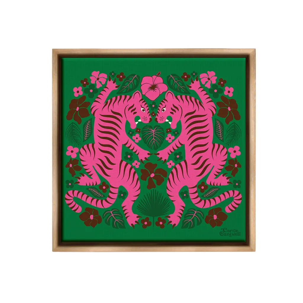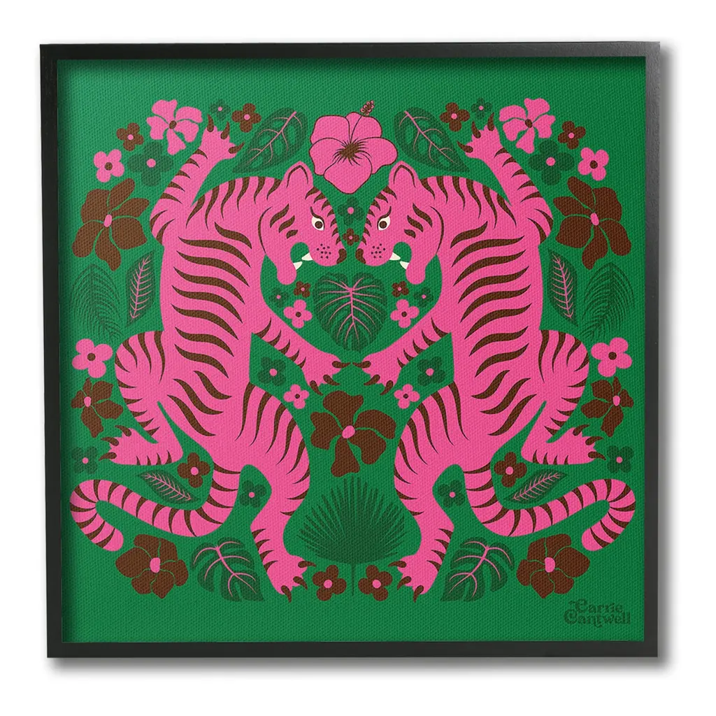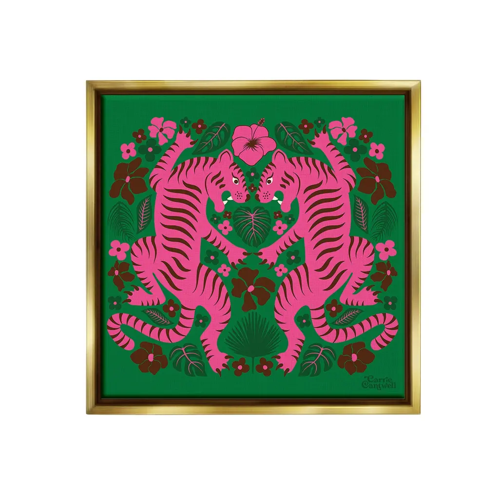 Elevate your home or office to the next level with Stupell Framed Floating Canvas Wall Art. Our premium hand-stretched canvas is mounted securely into a sturdy lightweight frame. The museum-style gap between the wrapped canvas and the box frame gives the illusion of floating artwork. Stupell Wall Art is made in the USA.Features: Dimensions: 18 x 1.7 x 18 Frame, 17 x 1.5 x 17 Canvas ArtFloating Frame Canvas Products are available in sizes 18"x18" and 25"x25". All Floating Frame Canvas Products have a 1.7" Depth.Wall Art is Ready to Hang with Hardware Free Hanging. No Installation required. For Easy Set Up Lean or Layer Artwork on Shelf or Against Wall. Artwork is Permently Fixed into the Frame.Our elevated 1.7" Thick Floating Frame is the perfect complement to our canvas style Wall Art. We use only the highest quality inks in house with industry leading printing solutions. Canvas is hand stretched over a durable wood foundation and then mounted securly into a Modern Box Frame. Made in the USA.Artwork Relates To: Pattern, Floral, Animal, Mammal, Tiger, Wildlife, Plant, Leaf, Nature, Flower, PatternDesign by Carrie Cantwell