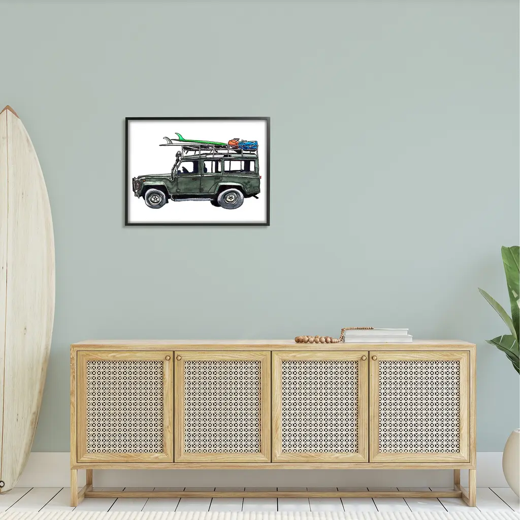 Stupell Tropical Vacation Beach Car Roof Rack Surfboards Framed Wall Art - Grey - 30 X 24 - Black