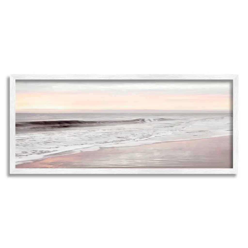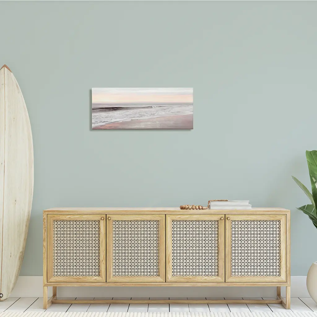 Stupell Tropical Waterfront Sunrise Incoming Tide Beach Panoramic Photography Canvas Wall Art - White - 30 X 13