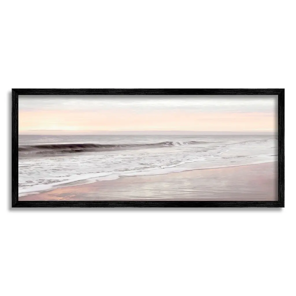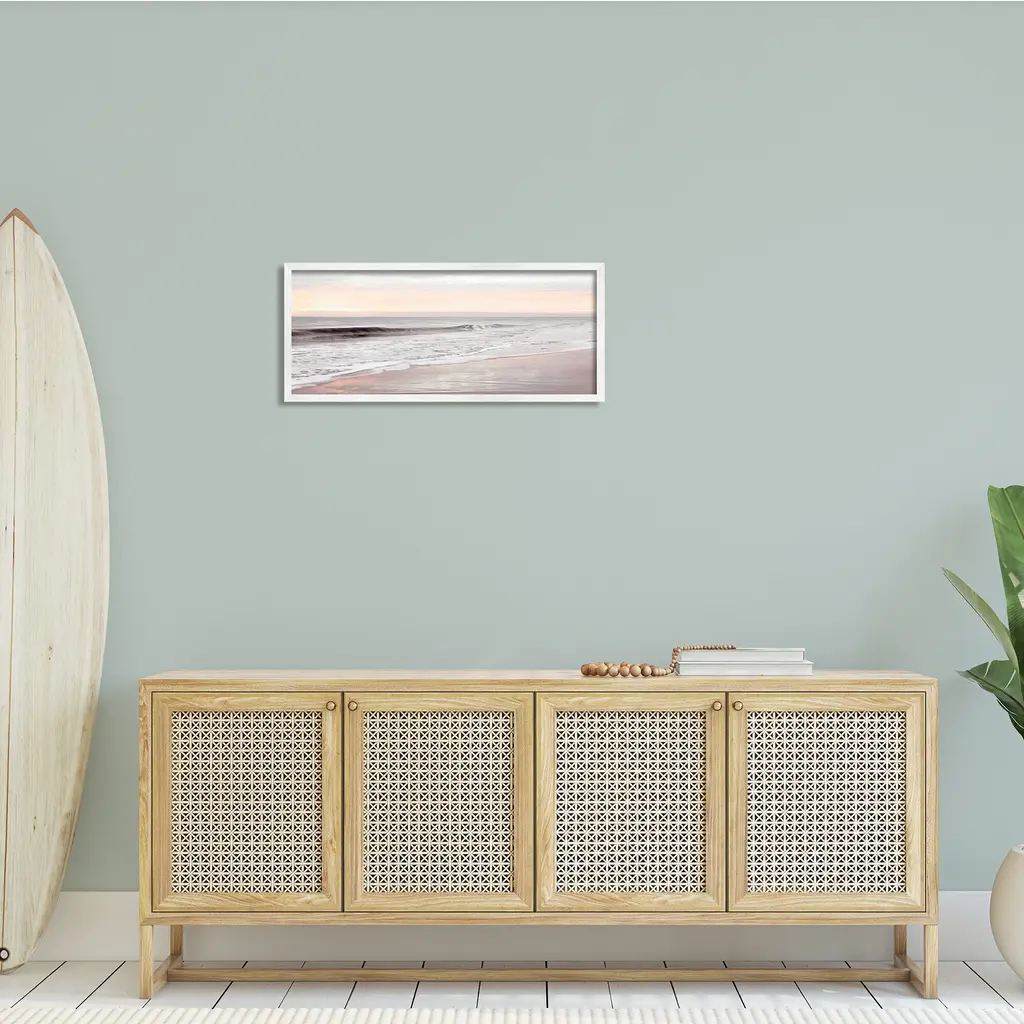 Stupell Tropical Waterfront Sunrise Incoming Tide Beach Panoramic Photography Framed Wall Art - White - 30 X 13 - White