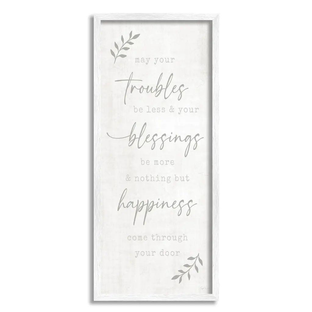Stupell Troubles Less Blessings More Motivational Phrase Plant Leaves Framed Wall Art - Grey - 13 X 30 - Black