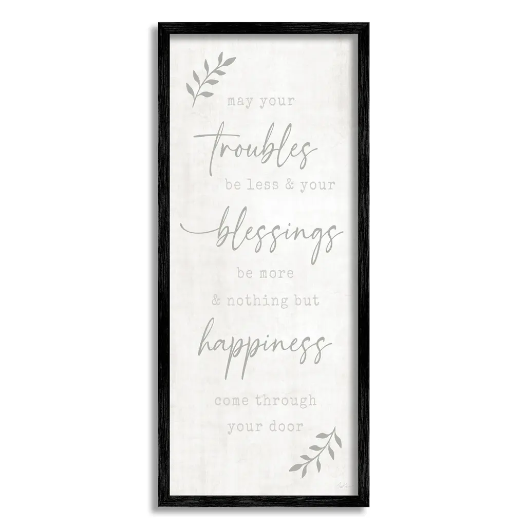 Stupell Troubles Less Blessings More Motivational Phrase Plant Leaves Framed Wall Art - Grey - 13 X 30 - Grey