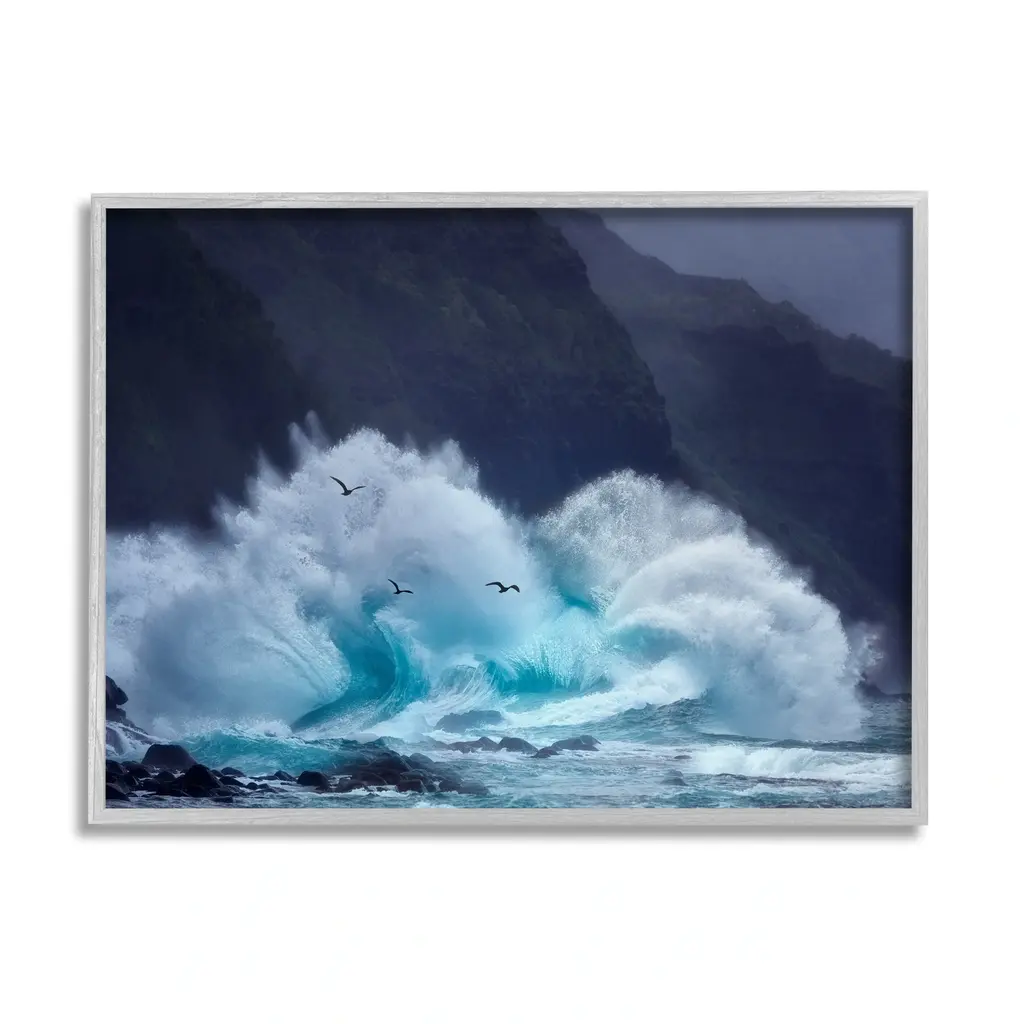 Add dimension to any room with our textured Framed Giclee Artwork. Our framed artwork is securely mounted into a 1.5-inch thick wood grain frame and ready to hang. Frames are available in three alluring styles: black, gray farmhouse and white. In addition, you should check out our oversized options if you want a statement piece. Stupell Wall Art is made in the USA.Features: Dimensions: 14 x 1.5 x 11 FramedFramed Giclee Sizes Include Standard: 14 x 1.5 x 11 Large: 20 x 1.5 x 16 Oversized: 30 x 1.5 x 24Wall Art is Ready to Hang with Hardware Free Hanging. No installation required. For Easy Set Up Lean or Layer Artwork on Shelf or Against Wall.Our giclée prints are carefully mounted on a durable MDF backing, and then perfectly finished in a 1.5 inch thick woodgrain frame. Mounted frame colors include black, gray farmhouse and white. Made In USA.Artwork Relates To: Nature, Outdoors, Sea, Water, Sea Waves, Animal, Bird, TsunamiDesign by Dennis Frates