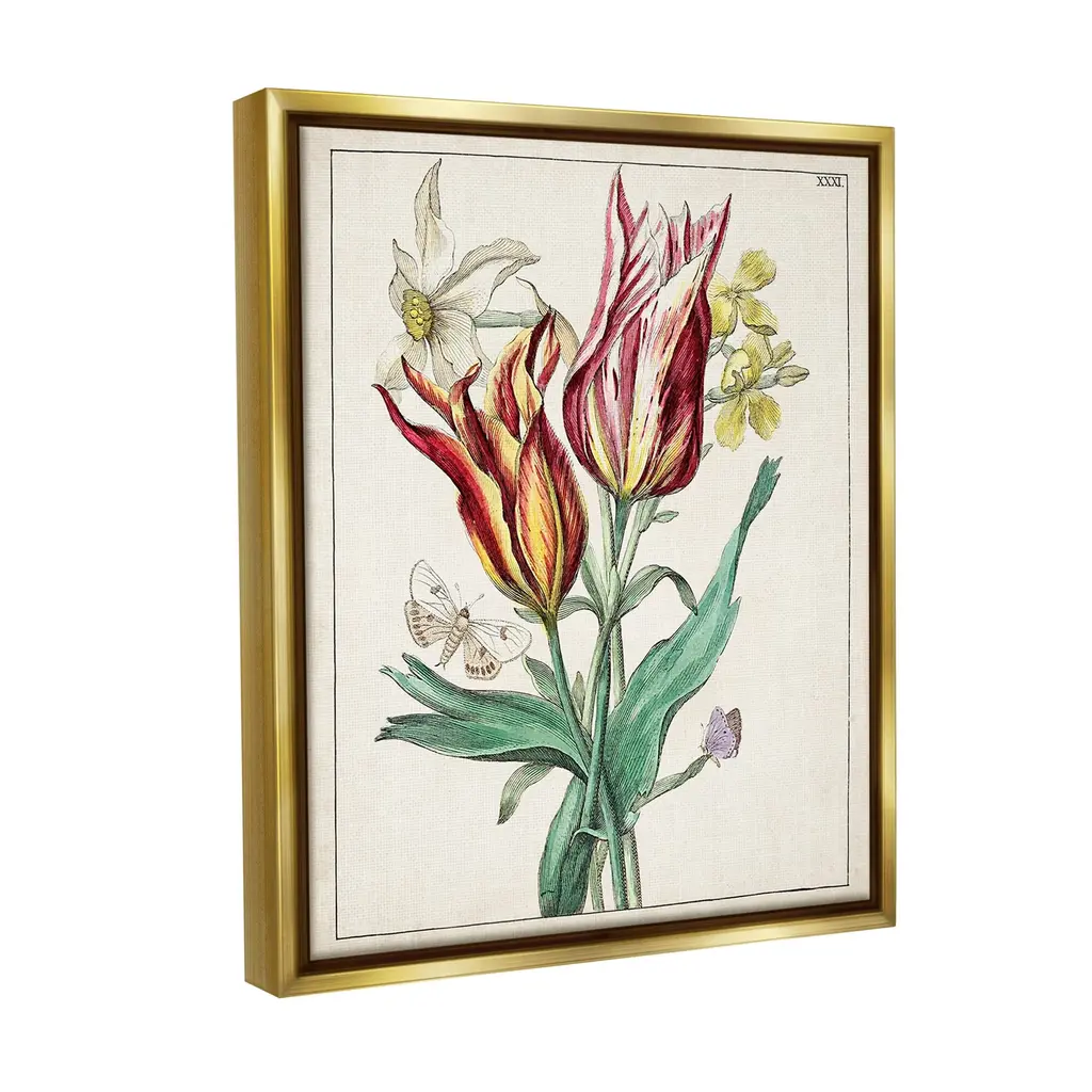Stupell Tulips & Moths Study Framed Floater Canvas Wall Art Design By World Art Group - 17 X 21 - Gold