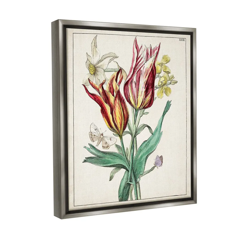 Stupell Tulips & Moths Study Framed Floater Canvas Wall Art Design By World Art Group - 17 X 21 - Grey