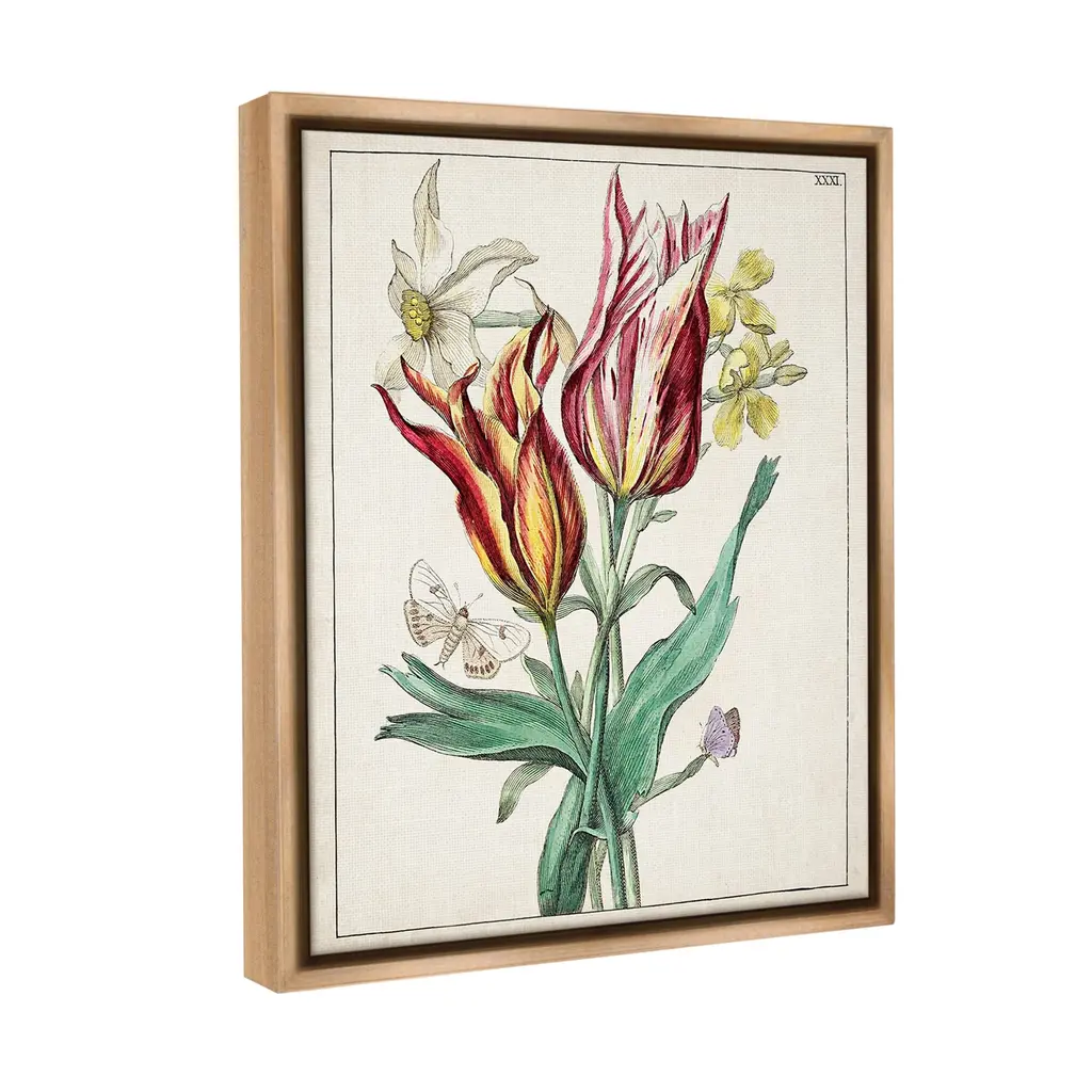 Stupell Tulips & Moths Study Framed Floater Canvas Wall Art Design By World Art Group - 25 X 31 - Brown