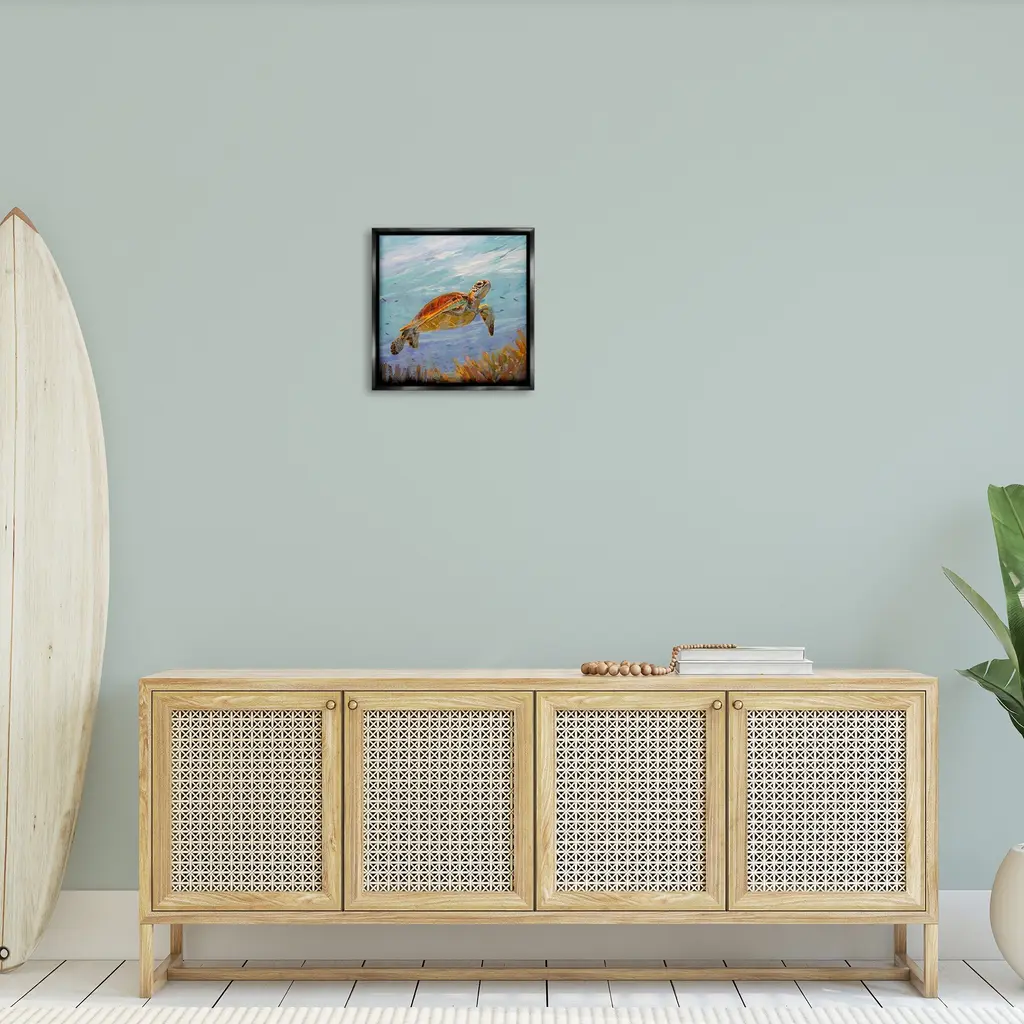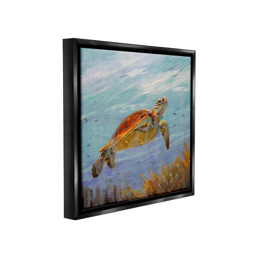 Elevate your home or office to the next level with Stupell Framed Floating Canvas Wall Art. Our premium hand-stretched canvas is mounted securely into a sturdy lightweight frame. The museum-style gap between the wrapped canvas and the box frame gives the illusion of floating artwork. Stupell Wall Art is made in the USA.Features: Dimensions: 18 x 1.7 x 18 Frame, 17 x 1.5 x 17 Canvas ArtFloating Frame Canvas Products are available in sizes 18"x18" and 25"x25". All Floating Frame Canvas Products have a 1.7" Depth.Wall Art is Ready to Hang with Hardware Free Hanging. No Installation required. For Easy Set Up Lean or Layer Artwork on Shelf or Against Wall. Artwork is Permently Fixed into the Frame.Our elevated 1.7" Thick Floating Frame is the perfect complement to our canvas style Wall Art. We use only the highest quality inks in house with industry leading printing solutions. Canvas is hand stretched over a durable wood foundation and then mounted securly into a Modern Box Frame. Made in the USA.Artwork Relates To: Animal, Reptile, Sea Life, Sea Turtle, Turtle, Tortoise, Water, Sea, Underwater, Coral, ReefDesign by Sandy Nelson