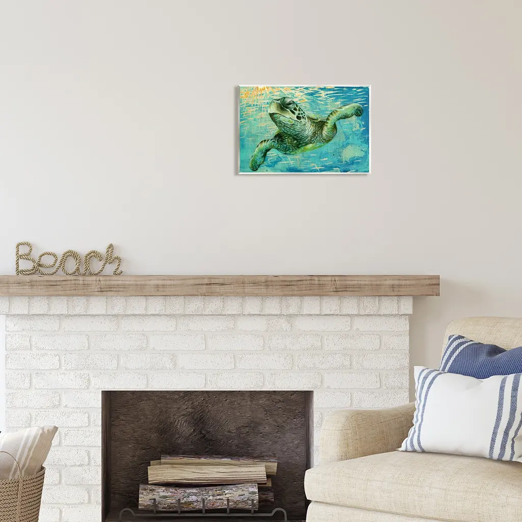 Our wall plaques start as high-quality lithograph prints mounted on durable 0.5-inch thick MDF wood. Each piece is hand finished and comes with a fresh layer of white foil on the sides to give it a crisp, clean look. Plaques arrive ready to hang without installation and come with removable plastic corners to keep them from damage in transit. Stupell Industries Wall Art is made in the USA.Features: Dimensions: 15 x 0.5 x 10 InchesWall Plaque Sizes Include Standard: 15 x 0.5 x 10 Oversized: 19 x 0.5 x 13Wall Art is Ready to Hang with Hardware Free Hanging. No installation required. For Easy Set Up Lean or Layer Artwork on Shelf or Against Wall.All of our wall plaques start off as high quality lithograph prints that are then mounted on durable 0.5 inch thick MDF wood. Each piece is hand finished and comes with a fresh layer of foil on the sides to give it a crisp clean look. Made In USA.Artwork Relates To: Animal, Sea Life, Sea Turtle, Turtle, Tortoise, UnderwaterDesign by Jessica Pidcock