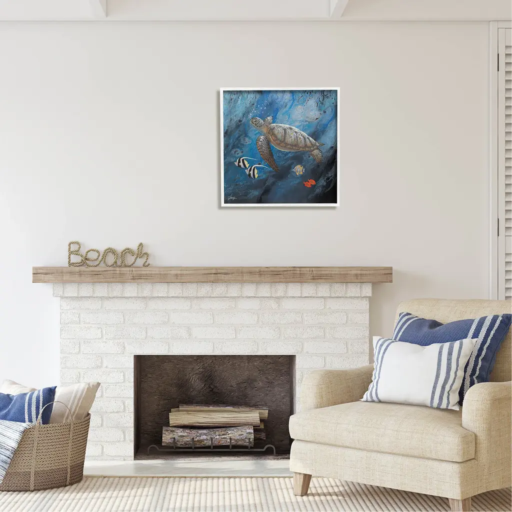 Add dimension to any room with our textured Framed Giclee Artwork. Our framed artwork is securely mounted into a 1.5-inch thick wood grain frame and ready to hang. Frames are available in three alluring styles: black, gray farmhouse and white. In addition, you should check out our oversized options if you want a statement piece. Stupell Wall Art is made in the USA.Features: Dimensions: 12 x 1.5 x 12 FramedFramed Giclee Sizes Include Standard: 12 x 1.5 x 12 Large: 17 x 1.5 x 17 Oversized: 24 x 1.5 x 24Wall Art is Ready to Hang - No Installation or Hardware Needed. For Easy Set Up Lean or Layer Artwork on Shelf or Against Wall.Our giclée prints are carefully mounted on a durable MDF backing, and then perfectly finished in a 1.5 inch thick woodgrain frame. Mounted frame colors include black, gray farmhouse and white. Made In USA.Artwork Relates To: Animal, Reptile, Sea Life, Turtle, Sea Turtle, Fish, Tortoise, Nature, Sea, Water, Reef, UnderwaterDesign by Jon Rattenbury