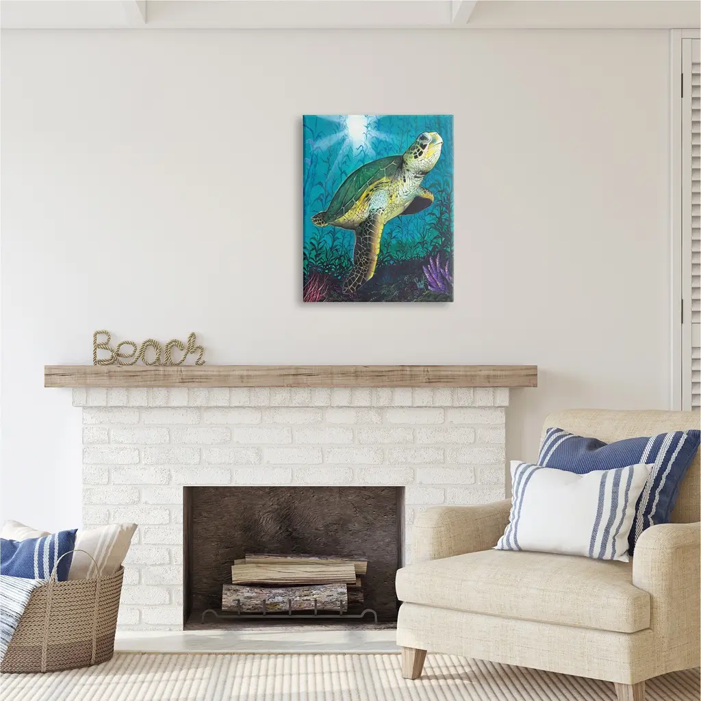 We create our stretched canvas to the highest standards. Using only the highest quality inks and canvas on Mimaki printers, we hand-cut and stretch each piece over a 1.5-inch thick wooden frame for hanging. As a result, the art comes ready to hang on the sturdy ledge with no installation required. Stupell Wall Art is made in the USA.Features: Dimensions: 16 x 1.5 x 20 InchesStretched Canvas Sizes Include Standard: 16 x 1.5 x 20 Large: 20 x 1.5 x 30 X-Large: 30 x 1.5 x 40 Oversized: 36 x 1.5 x 48Wall Art is Ready to Hang with Hardware Free Hanging. No installation required. For Easy Set Up Lean or Layer Artwork on Shelf or Against Wall.Our stretched canvas is created with the highest standards. We use only the highest quality inks and canvas on our in house Mimaki printers, and then hand cut and stretch each piece over a 1.5 inch thick wooden frame for hanging. Made In USA.Artwork Relates To: Animal, Reptile, Sea Life, Turtle, Sea Turtle, Tortoise, Nature, Water, Sea, Reef, Aquatic, Underwater, Coral, ReefDesign by Scott Westmoreland