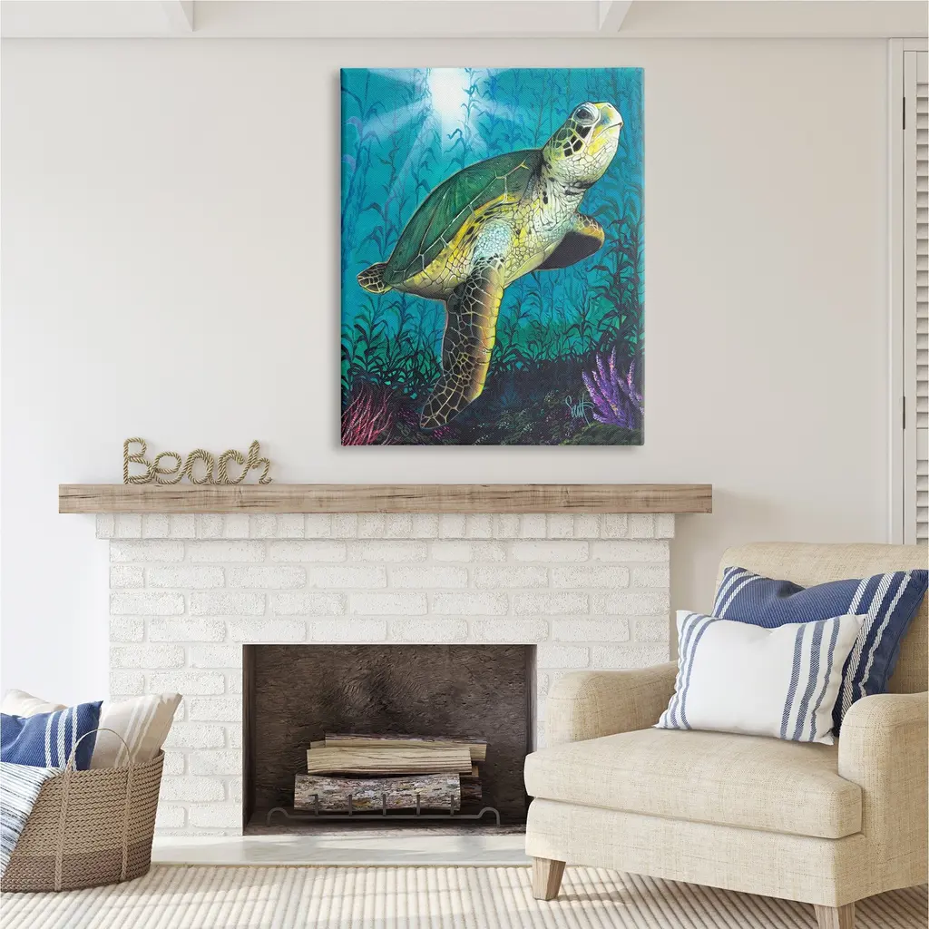 We create our stretched canvas to the highest standards. Using only the highest quality inks and canvas on Mimaki printers, we hand-cut and stretch each piece over a 1.5-inch thick wooden frame for hanging. As a result, the art comes ready to hang on the sturdy ledge with no installation required. Stupell Wall Art is made in the USA.Features: Dimensions: 16 x 1.5 x 20 InchesStretched Canvas Sizes Include Standard: 16 x 1.5 x 20 Large: 20 x 1.5 x 30 X-Large: 30 x 1.5 x 40 Oversized: 36 x 1.5 x 48Wall Art is Ready to Hang with Hardware Free Hanging. No installation required. For Easy Set Up Lean or Layer Artwork on Shelf or Against Wall.Our stretched canvas is created with the highest standards. We use only the highest quality inks and canvas on our in house Mimaki printers, and then hand cut and stretch each piece over a 1.5 inch thick wooden frame for hanging. Made In USA.Artwork Relates To: Animal, Reptile, Sea Life, Turtle, Sea Turtle, Tortoise, Nature, Water, Sea, Reef, Aquatic, Underwater, Coral, ReefDesign by Scott Westmoreland