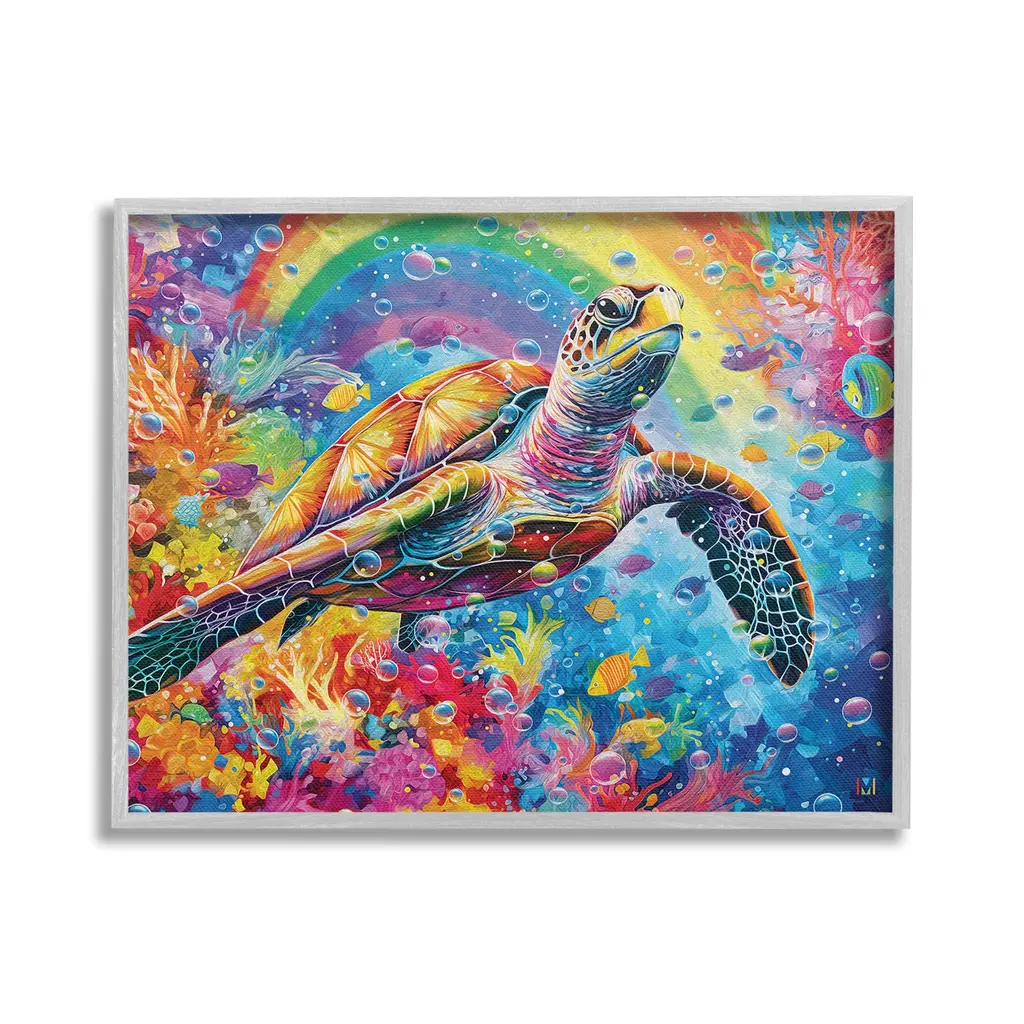 Add dimension to any room with our textured Framed Giclee Artwork. Our framed artwork is securely mounted into a 1.5-inch thick wood grain frame and ready to hang. Frames are available in three alluring styles: black, gray farmhouse and white. In addition, you should check out our oversized options if you want a statement piece. Stupell Wall Art is made in the USA.Features: Dimensions: 14 x 1.5 x 11 FramedFramed Giclee Products are available in the sizes 14"x11", 20"x16" or 30"x24". All Framed Giclee Products have a 1.5" Depth. Wall Art is Ready to Hang with Hardware Free Hanging. No installation required. For Easy Set Up Lean or Layer Artwork on Shelf or Against Wall.Our giclée prints are carefully mounted on a durable MDF backing, and then perfectly finished in a 1.5 inch thick woodgrain frame. Mounted frame colors include black, gray farmhouse and white. Made In USA.Artwork Relates To: Sea, Water, Animal, Reef, Sea Life, Fish, Turtle, Aquatic, Dolphin, Modern, Abstract, RainbowDesign by Michael David Ward