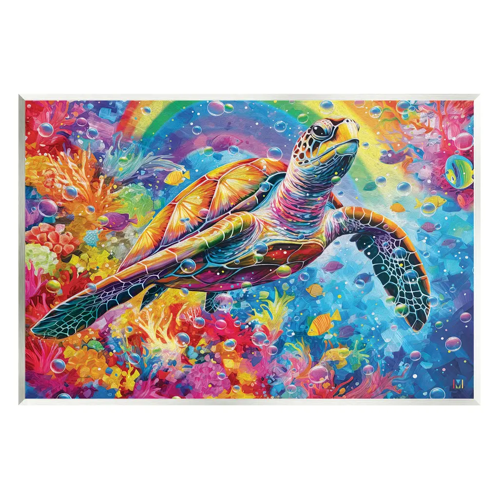 Add dimension to any room with our textured Framed Giclee Artwork. Our framed artwork is securely mounted into a 1.5-inch thick wood grain frame and ready to hang. Frames are available in three alluring styles: black, gray farmhouse and white. In addition, you should check out our oversized options if you want a statement piece. Stupell Wall Art is made in the USA.Features: Dimensions: 14 x 1.5 x 11 FramedFramed Giclee Products are available in the sizes 14"x11", 20"x16" or 30"x24". All Framed Giclee Products have a 1.5" Depth. Wall Art is Ready to Hang with Hardware Free Hanging. No installation required. For Easy Set Up Lean or Layer Artwork on Shelf or Against Wall.Our giclée prints are carefully mounted on a durable MDF backing, and then perfectly finished in a 1.5 inch thick woodgrain frame. Mounted frame colors include black, gray farmhouse and white. Made In USA.Artwork Relates To: Sea, Water, Animal, Reef, Sea Life, Fish, Turtle, Aquatic, Dolphin, Modern, Abstract, RainbowDesign by Michael David Ward