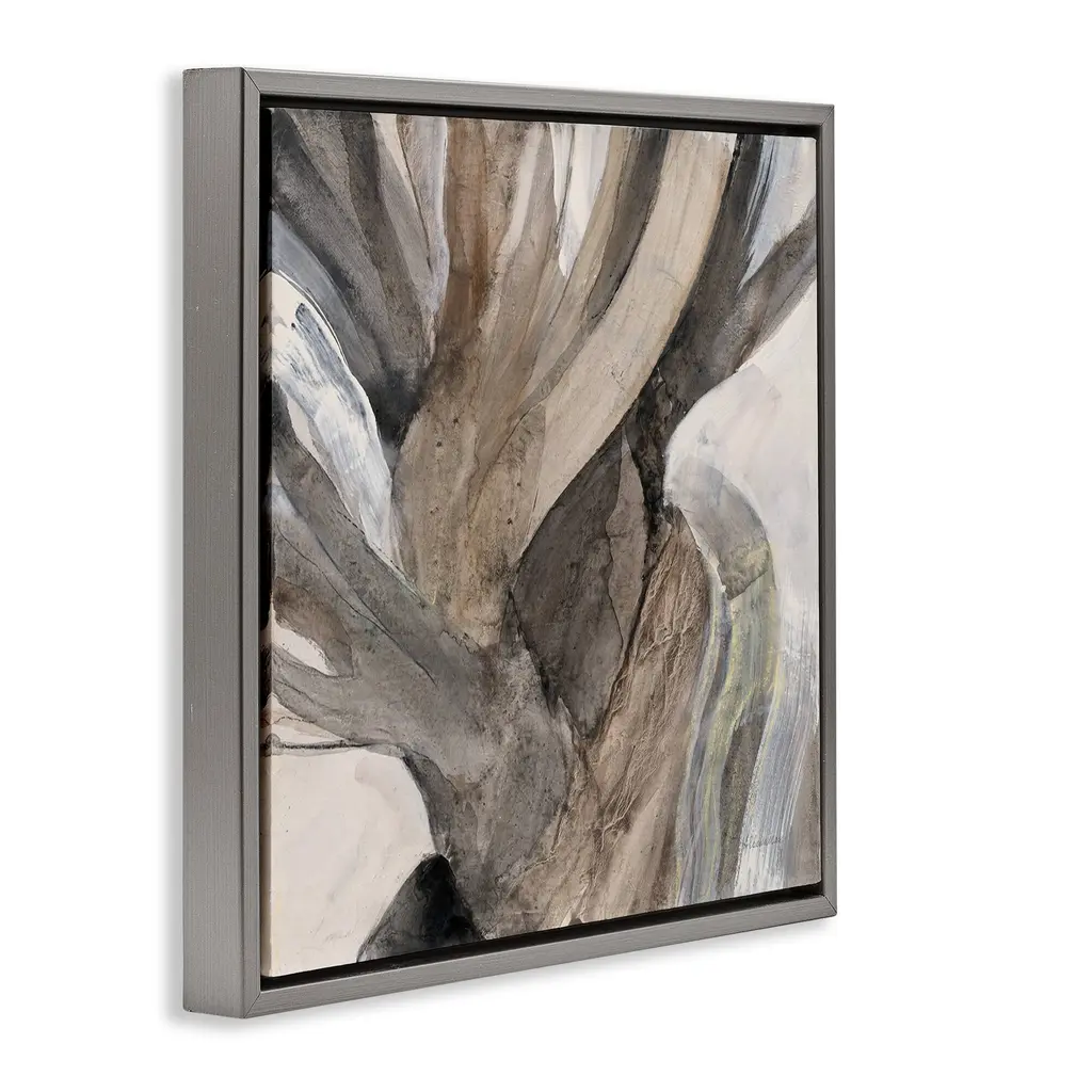 Stupell Twisted Driftwood Abstraction Framed Floater Canvas Wall Art Design By Albena Hristova - 18 X 18 - Grey
