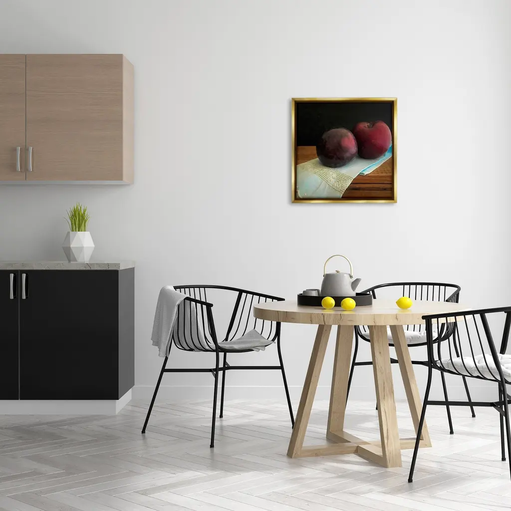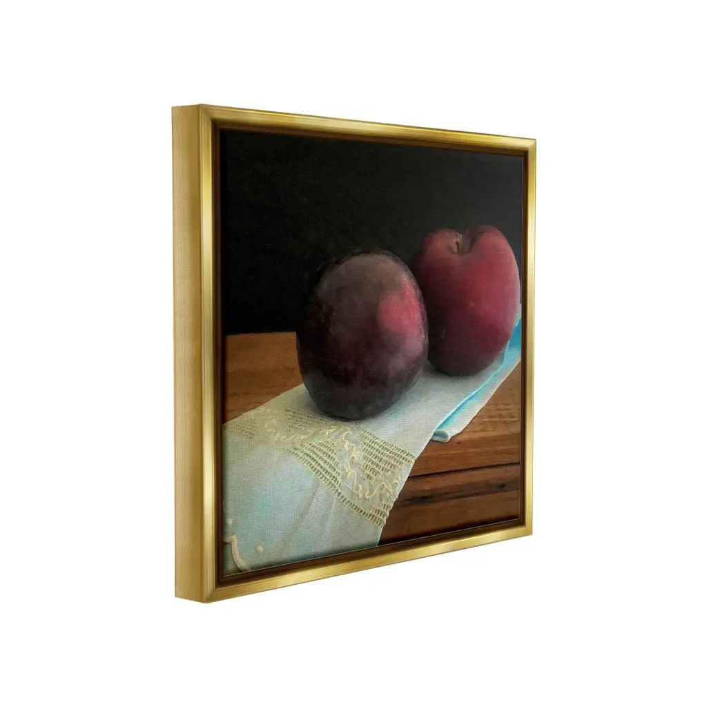 Elevate your home or office to the next level with Stupell Framed Floating Canvas Wall Art. Our premium hand-stretched canvas is mounted securely into a sturdy lightweight frame. The museum-style gap between the wrapped canvas and the box frame gives the illusion of floating artwork. Stupell Wall Art is made in the USA.Features: Dimensions: 18 x 1.7 x 18 Frame, 17 x 1.5 x 17 Canvas ArtFloating Frame Canvas Products are available in sizes 18"x18" and 25"x25". All Floating Frame Canvas Products have a 1.7" Depth.Wall Art is Ready to Hang with Hardware Free Hanging. No Installation required. For Easy Set Up Lean or Layer Artwork on Shelf or Against Wall. Artwork is Permently Fixed into the Frame.Our elevated 1.7" Thick Floating Frame is the perfect complement to our canvas style Wall Art. We use only the highest quality inks in house with industry leading printing solutions. Canvas is hand stretched over a durable wood foundation and then mounted securly into a Modern Box Frame. Made in the USA.Artwork Relates To: Food, Fruit, Plant, Produce, Plum, Apple, Still LifeDesign by GraffiTee Studios