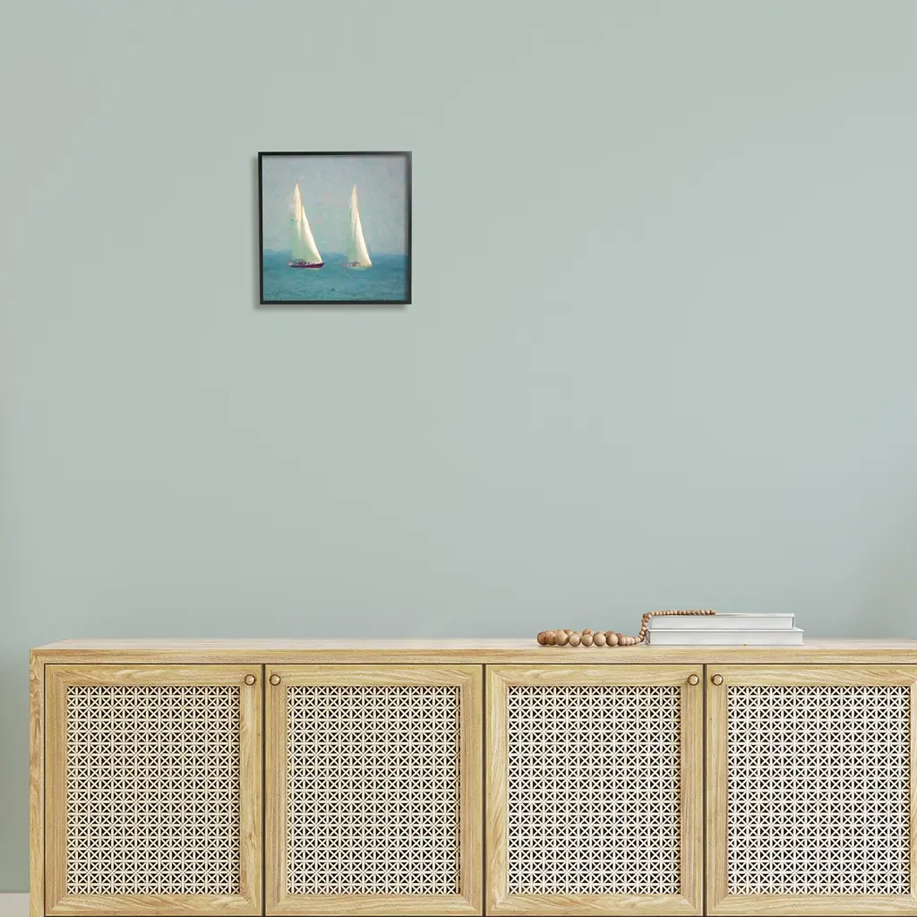 Stupell Two Sailboats Floating Foggy Ocean Weather Painting Framed Wall Art, Design By Graffitee Studios - Blue - 12 X 12 - Black
