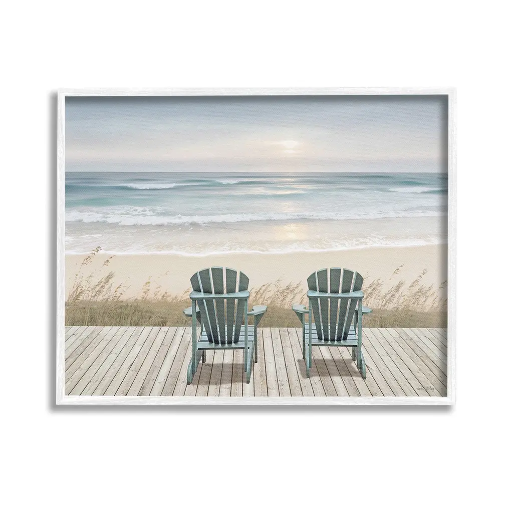 Stupell Two White Adirondack Chairs On The Beach Framed Art, 11 X 14, Design By Artist Zhen-Huan Lu - Multi-Color - 24 X 30 - Black