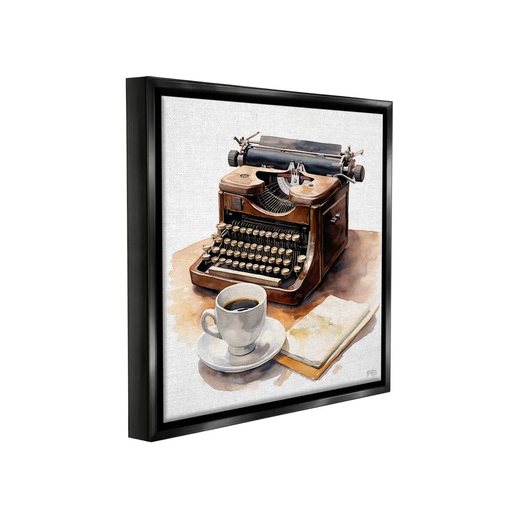 Elevate your home or office to the next level with Stupell Framed Floating Canvas Wall Art. Our premium hand-stretched canvas is mounted securely into a sturdy lightweight frame. The museum-style gap between the wrapped canvas and the box frame gives the illusion of floating artwork. Stupell Wall Art is made in the USA.Features: Dimensions: 18 x 1.7 x 18 Frame, 17 x 1.5 x 17 Canvas ArtFloating Frame Canvas Products are available in sizes 18"x18" and 25"x25". All Floating Frame Canvas Products have a 1.7" Depth.Wall Art is Ready to Hang with Hardware Free Hanging. No Installation required. For Easy Set Up Lean or Layer Artwork on Shelf or Against Wall. Artwork is Permently Fixed into the Frame.Our elevated 1.7" Thick Floating Frame is the perfect complement to our canvas style Wall Art. We use only the highest quality inks in house with industry leading printing solutions. Canvas is hand stretched over a durable wood foundation and then mounted securly into a Modern Box Frame. Made in the USA.Artwork Relates To: Beverage, Coffee, Mug, Typewriter, Vintage, Book, Journal, Tea, TeacupDesign by RB