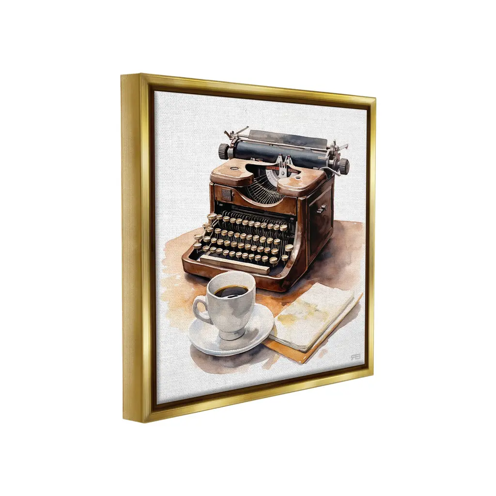 Stupell Typewriter With Coffee Mug Framed Floater Canvas Wall Art Design By Rb - 25 X 25 - Gold