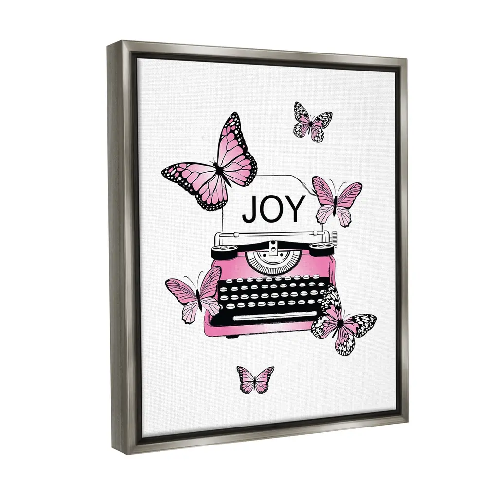 Elevate your home or office to the next level with Stupell Framed Floating Canvas Wall Art. Our premium hand-stretched canvas is mounted securely into a sturdy lightweight frame. The museum-style gap between the wrapped canvas and the box frame gives the illusion of floating artwork. Stupell Wall Art is made in the USA.Features: Dimensions: 17 x 1.7 x 21 Frame, 16 x 1.5 x 20 Canvas ArtFloating Frame Canvas Products are available in sizes 17"x21" and 25"x31". All Floating Frame Canvas Products have a 1.7" Depth.Wall Art is Ready to Hang with Hardware Free Hanging. No Installation required. For Easy Set Up Lean or Layer Artwork on Shelf or Against Wall. Artwork is Permently Fixed into the Frame.Our elevated 1.7" Thick Floating Frame is the perfect complement to our canvas style Wall Art. We use only the highest quality inks in house with industry leading printing solutions. Canvas is hand stretched over a durable wood foundation and then mounted securly into a Modern Box Frame. Made in the USA.Artwork Relates To: Typewriter, Vintage, Glam, Joy, Insect, Butterfly, PinkDesign by Martina Pavlova