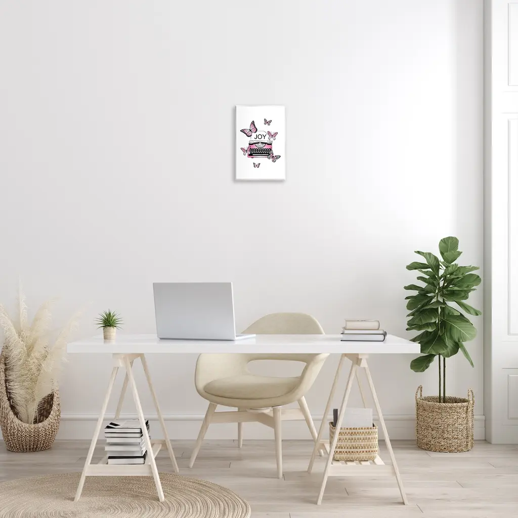 Our wall plaques start as high-quality lithograph prints mounted on durable 0.5-inch thick MDF wood. Each piece is hand finished and comes with a fresh layer of white foil on the sides to give it a crisp, clean look. Plaques arrive ready to hang without installation and come with removable plastic corners to keep them from damage in transit. Stupell Wall Art is made in the USA.Features: Dimensions: 10 x 0.5 x 15 InchesWall Plaque Product Sizes Include 10"x15" and 13"x19". All wall plaque products have a 0.5" Depth. Wall Art is Ready to Hang with Hardware Free Hanging. No installation required. For Easy Set Up Lean or Layer Artwork on Shelf or Against Wall.All of our wall plaques start off as high quality lithograph prints that are then mounted on durable 0.5 inch thick MDF wood. Each piece is hand finished and comes with a fresh layer of foil on the sides to give it a crisp clean look. Made In USA.Artwork Relates To: Typewriter, Vintage, Glam, Joy, Insect, Butterfly, PinkDesign by Martina Pavlova