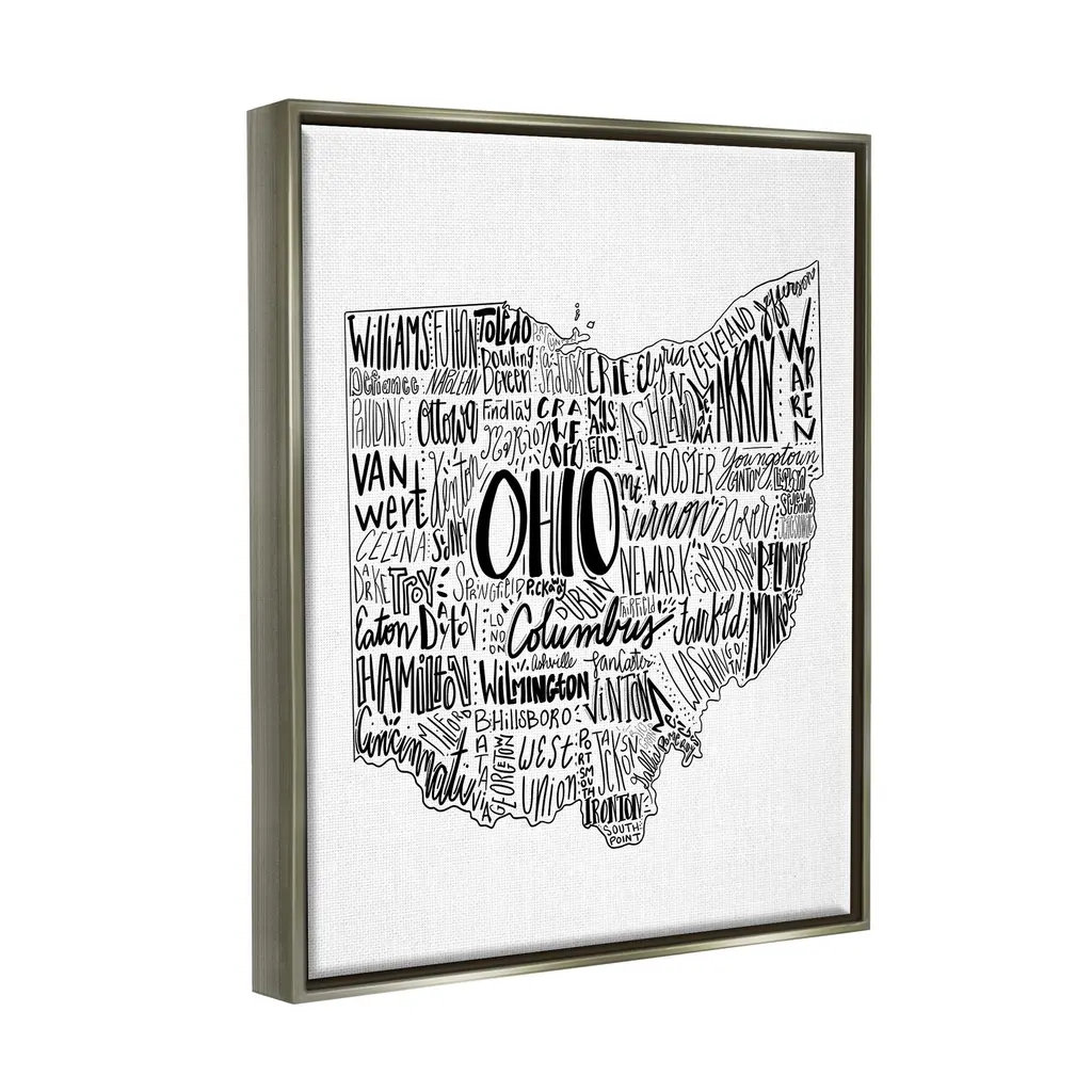Stupell Typography Cities Ohio State Floating Framed Canvas Wall Art, Design By The Saturday Evening Post - 17 X 21 - Grey