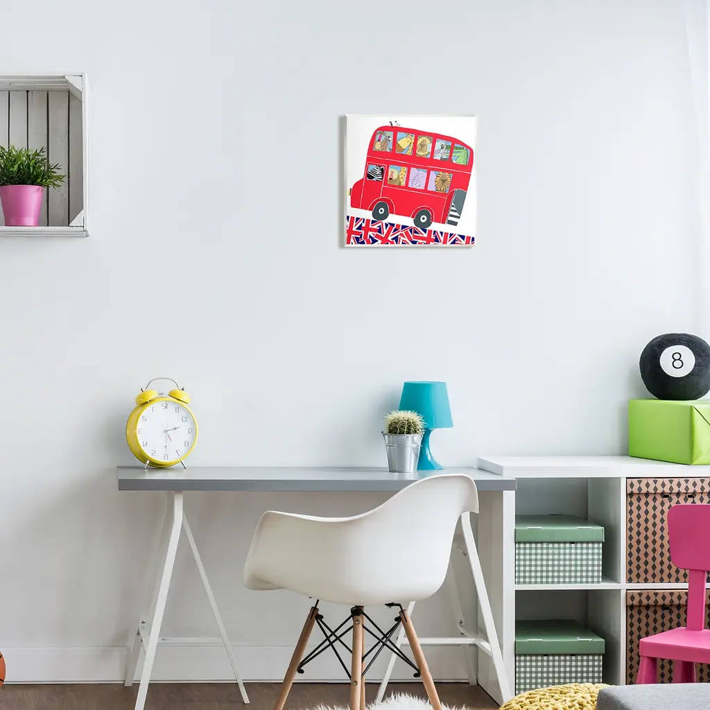 Our wall plaques start as high-quality lithograph prints mounted on durable 0.5-inch thick MDF wood. Each piece is hand finished and comes with a fresh layer of white foil on the sides to give it a crisp, clean look. Plaques arrive ready to hang without installation and come with removable plastic corners to keep them from damage in transit. Stupell Wall Art is made in the USA.Features: Dimensions: 12 x 0.5 x 12 InchesWall Art is Ready to Hang with Hardware Free Hanging. No installation required. For Easy Set Up Lean or Layer Artwork on Shelf or Against Wall.All of our wall plaques start off as high quality lithograph prints that are then mounted on durable 0.5 inch thick MDF wood. Each piece is hand finished and comes with a fresh layer of foil on the sides to give it a crisp clean look. Made In USA.Artwork Relates To: Bus, Transportation, Vehicle, Double Decker Bus, Animal, Giraffe, Alligator, Zebra, Elephant, Lion, Tiger, UK, United KingdomDesign by Carla Daly