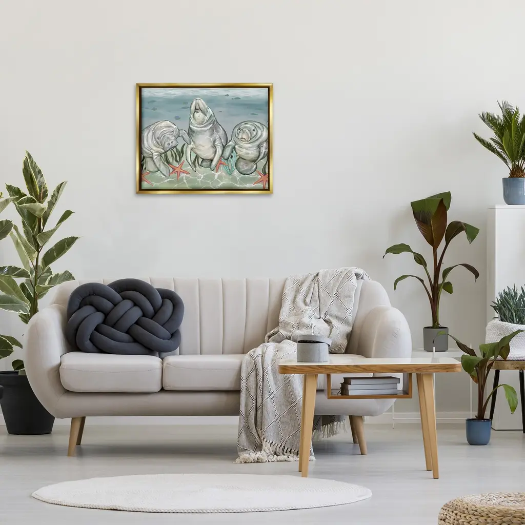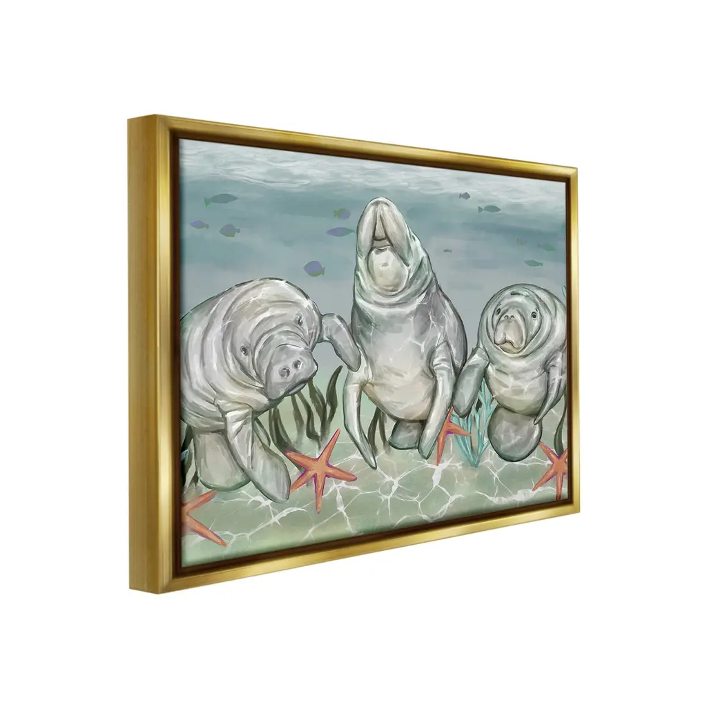 Stupell Underwater Manatees & Starfish Framed Floater Canvas Wall Art Design By Ziwei Li - 31 X 25 - Gold