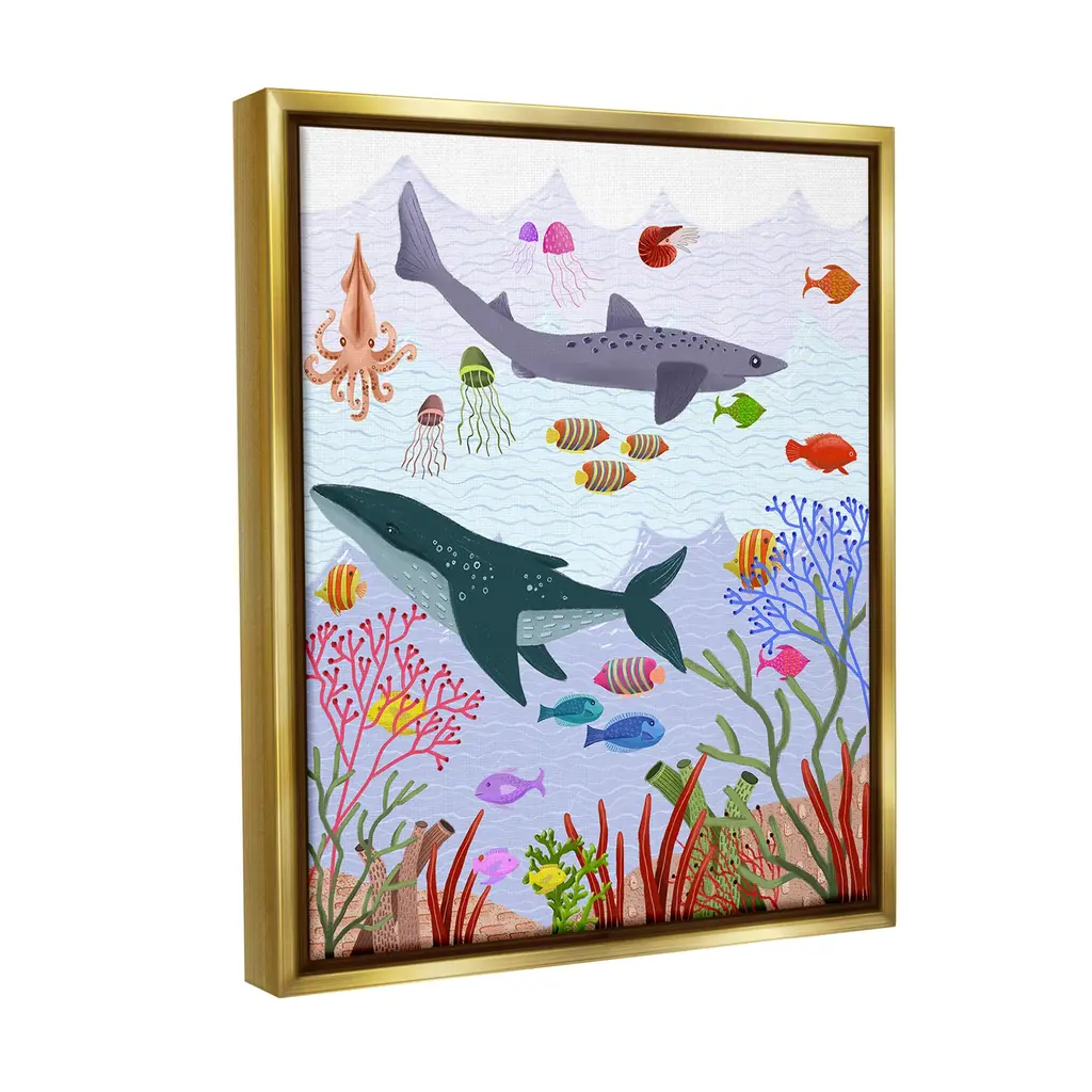 Stupell Underwater Sea Animals Framed Floater Canvas Wall Art Design By Regina Moore - 25 X 31 - Gold