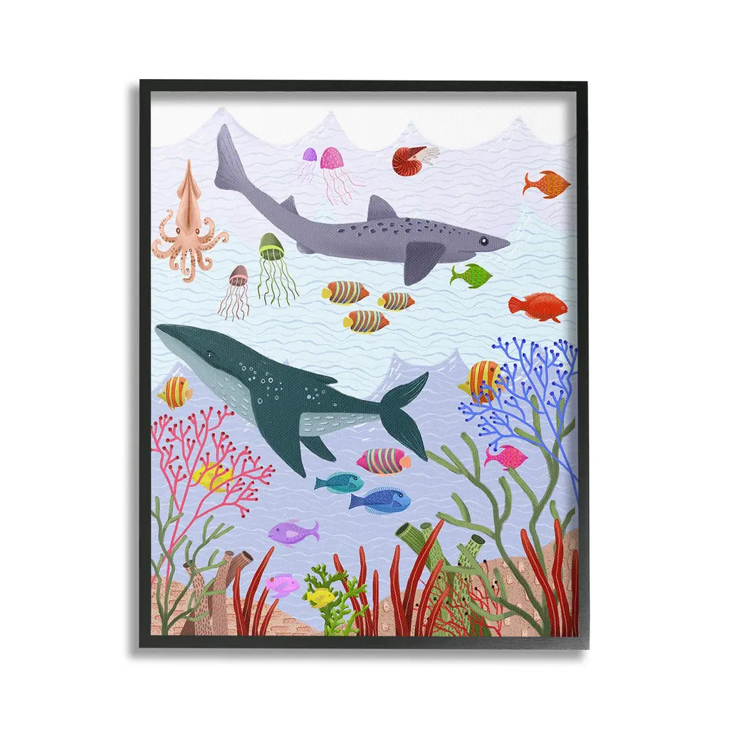 Add dimension to any room with our textured Framed Giclee Artwork. Our framed artwork is securely mounted into a 1.5-inch thick wood grain frame and ready to hang. Frames are available in three alluring styles: black, gray farmhouse and white. In addition, you should check out our oversized options if you want a statement piece. Stupell Wall Art is made in the USA.Features: Dimensions: 11 x 1.5 x 14 FramedFramed Giclee Products are available in the sizes 11"x14", 16"x20" or 24"x30". All Framed Giclee Products have a 1.5" Depth. Wall Art is Ready to Hang with Hardware Free Hanging. No installation required. For Easy Set Up Lean or Layer Artwork on Shelf or Against Wall.Our giclée prints are carefully mounted on a durable MDF backing, and then perfectly finished in a 1.5 inch thick woodgrain frame. Mounted frame colors include black, gray farmhouse and white. Made In USA.Artwork Relates To: Animal, Sea Life, Fish, Shark, Nature, Reef, Sea, Water, Whale, Aquatic, UnderwaterDesign by Regina Moore