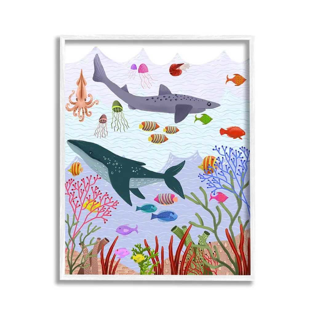 Our wall plaques start as high-quality lithograph prints mounted on durable 0.5-inch thick MDF wood. Each piece is hand finished and comes with a fresh layer of white foil on the sides to give it a crisp, clean look. Plaques arrive ready to hang without installation and come with removable plastic corners to keep them from damage in transit. Stupell Wall Art is made in the USA.Features: Dimensions: 10 x 0.5 x 15 InchesWall Plaque Product Sizes Include 10"x15" and 13"x19". All wall plaque products have a 0.5" Depth. Wall Art is Ready to Hang with Hardware Free Hanging. No installation required. For Easy Set Up Lean or Layer Artwork on Shelf or Against Wall.All of our wall plaques start off as high quality lithograph prints that are then mounted on durable 0.5 inch thick MDF wood. Each piece is hand finished and comes with a fresh layer of foil on the sides to give it a crisp clean look. Made In USA.Artwork Relates To: Animal, Sea Life, Fish, Shark, Nature, Reef, Sea, Water, Whale, Aquatic, UnderwaterDesign by Regina Moore