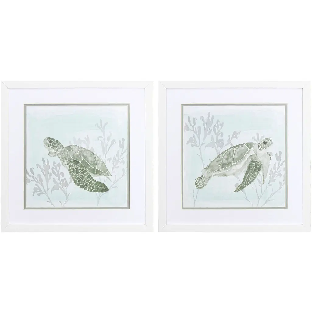 Fill any space in your home or office with our Framed Wall Art Sets. Our textured artwork will add more depth and dimension to any space. Each piece is mounted into a 1.5 inch thick ebony wood grain frame that is ready to hang. Looking for a statement piece? Our boxed framed products are now available in three alluring styles: black, gray farmhouse and white. We have oversized artwork available.Features: Dimensions: 2 Piece Set, Each Panel is 12 x 1.5 x 12 FramedFramed Giclee Set Sizes Include Standard: 2pc, Each is 12 x 1.5 x 12 Large: 2pc, Each is 17 x 1.5 x 17 Oversized: 2pc, Each is 24 x 1.5 x 24Wall Art is Ready to Hang - No Installation or Hardware Needed. For Easy Set Up Lean or Layer Artwork on Shelf or Against Wall.Curated Wall Art Sets make it easy for you complete the theme for any room. Our giclée prints are carefully mounted on a durable MDF backing, and then perfectly finished in a 1.5 inch thick woodgrain frame. Mounted frame colors include black, gray farmhouse and white. Made In USA.Artwork Relates To: Turtle, Sea Life, Animal, Reptile, Sea Turtle, Tortoise, Underwater, CoralDesign by Lucille Price