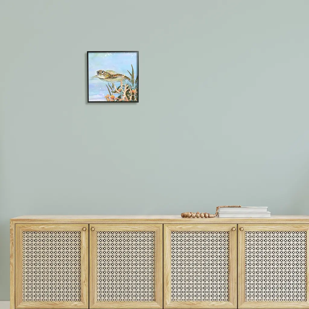 Our Framed Giclee Wall Art adds a touch of class to any space in your home or office. Frames are available in three alluring styles: black, gray farmhouse and white. Our textured artwork will add more depth and dimension to any space. Each piece is mounted with a 1.5 inch thick wood grain frame that is ready to hang! Looking for a statement piece? We have oversized artwork available.Features:Framed Giclee Sizes IncludeStandard: 12 x 1.5 x 12Large: 17 x 1.5 x 17Oversized: 24 x 1.5 x 24Wall Art is Ready to Hang - No Installation or Hardware Needed. For Easy Set Up Lean or Layer Artwork on Shelf or Against Wall.Artwork Relates To: Turtle, Animal, Sea Life, Reptile, Tortoise, Sea Turtle, Reef, Underwater, Ocean, Sea, BotanicalOur giclee prints are carefully mounted on a durable MDF backing, and then perfectly finished in a 1.5 inch thick woodgrain frame. Mounted frame colors include black, gray farmhouse and white. Made In USA.Design by Diannart