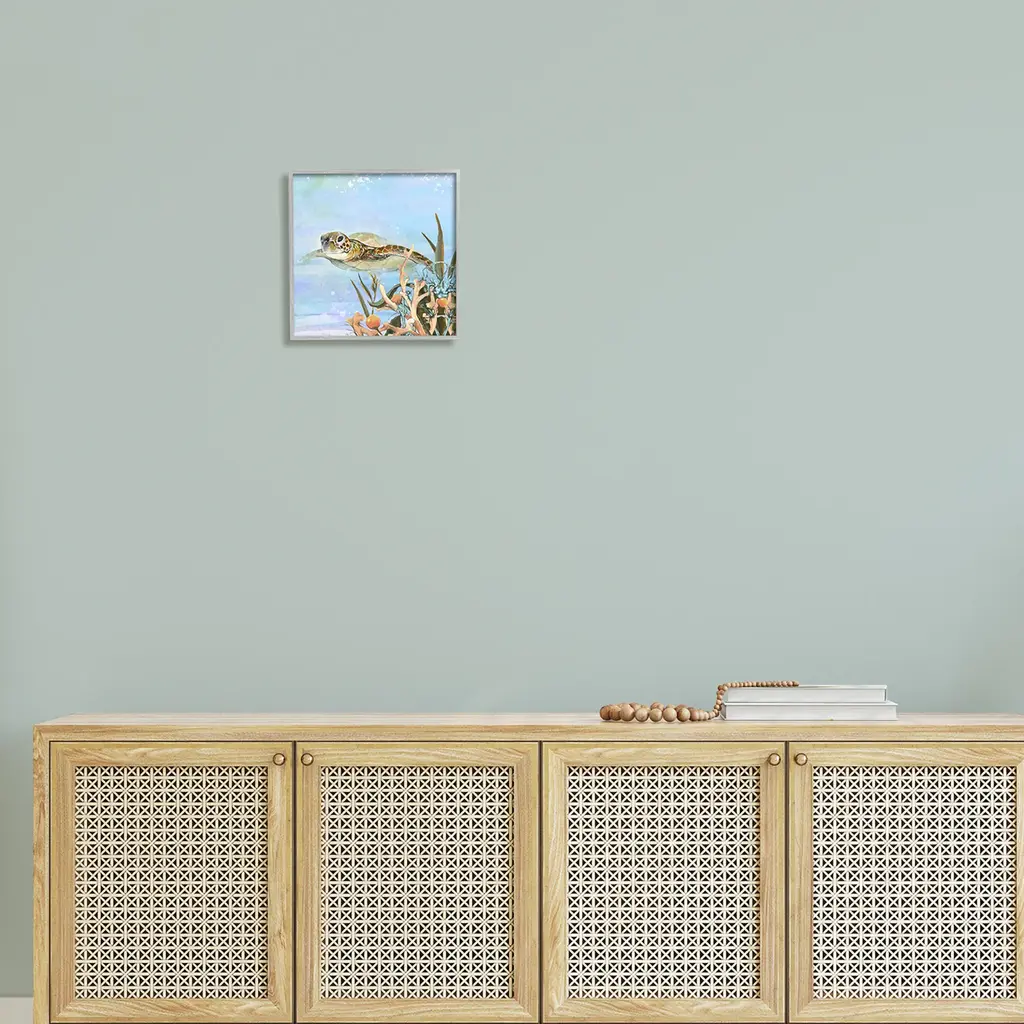 Stupell Underwater Sea Turtle Swimming Framed Giclee Texturized Wall Art, Design By Diannart - 12 X 12 - Grey