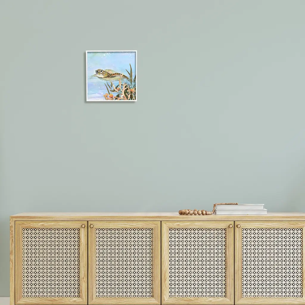 Our Framed Giclee Wall Art adds a touch of class to any space in your home or office. Frames are available in three alluring styles: black, gray farmhouse and white. Our textured artwork will add more depth and dimension to any space. Each piece is mounted with a 1.5 inch thick wood grain frame that is ready to hang! Looking for a statement piece? We have oversized artwork available.Features:Framed Giclee Sizes IncludeStandard: 12 x 1.5 x 12Large: 17 x 1.5 x 17Oversized: 24 x 1.5 x 24Wall Art is Ready to Hang - No Installation or Hardware Needed. For Easy Set Up Lean or Layer Artwork on Shelf or Against Wall.Artwork Relates To: Turtle, Animal, Sea Life, Reptile, Tortoise, Sea Turtle, Reef, Underwater, Ocean, Sea, BotanicalOur giclee prints are carefully mounted on a durable MDF backing, and then perfectly finished in a 1.5 inch thick woodgrain frame. Mounted frame colors include black, gray farmhouse and white. Made In USA.Design by Diannart