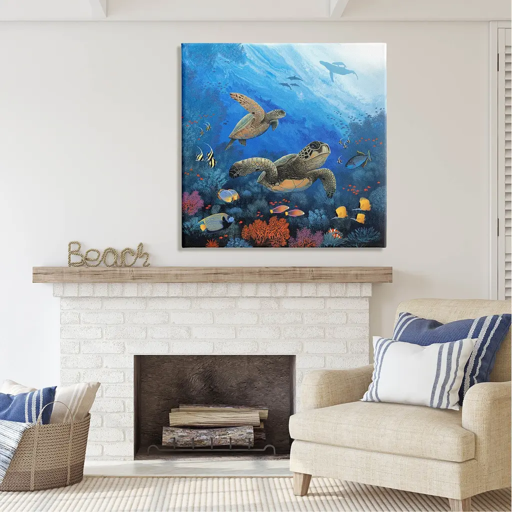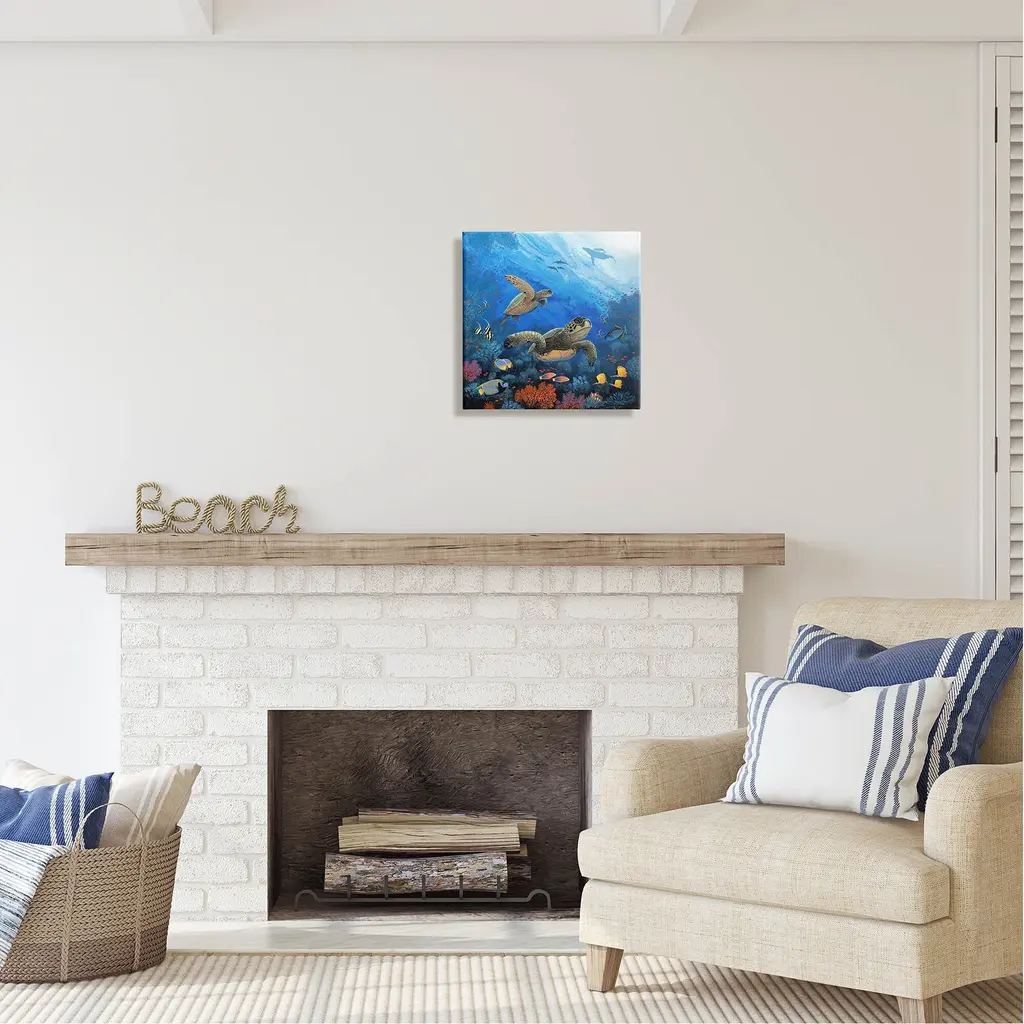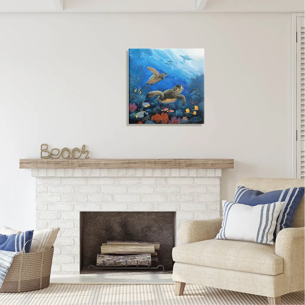 We create our stretched canvas to the highest standards. Using only the highest quality inks and canvas on Mimaki printers, we hand-cut and stretch each piece over a 1.5-inch thick wooden frame for hanging. As a result, the art comes ready to hang on the sturdy ledge with no installation required. Stupell Wall Art is made in the USA.Features: Dimensions: 17 x 1.5 x 17 InchesStretched Canvas Sizes Include Standard: 17 x 1.5 x 17 Large: 24 x 1.5 x 24 X-Large: 30 x 1.5 x 30 Oversized: 36 x 1.5 x 36Wall Art is Ready to Hang - No Installation or Hardware Needed. For Easy Set Up Lean or Layer Artwork on Shelf or Against Wall.Our stretched canvas is created with the highest standards. We use only the highest quality inks and canvas on our in house Mimaki printers, and then hand cut and stretch each piece over a 1.5 inch thick wooden frame for hanging. Made In USA.Artwork Relates To: Animal, Reptile, Sea Life, Turtle, Sea Turtle, Fish, Tortoise, Nature, Sea, Water, Reef, UnderwaterDesign by Jon Rattenbury