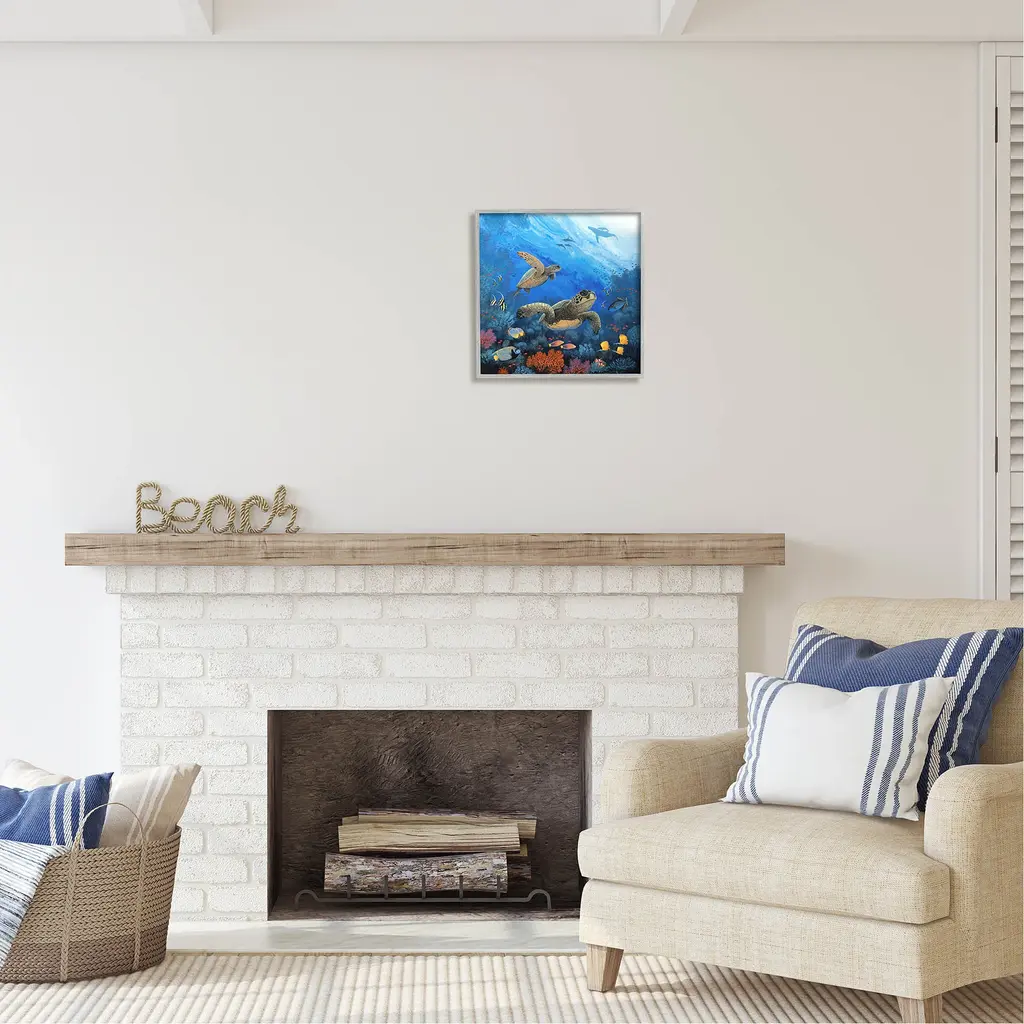 Add dimension to any room with our textured Framed Giclee Artwork. Our framed artwork is securely mounted into a 1.5-inch thick wood grain frame and ready to hang. Frames are available in three alluring styles: black, gray farmhouse and white. In addition, you should check out our oversized options if you want a statement piece. Stupell Wall Art is made in the USA.Features: Dimensions: 12 x 1.5 x 12 FramedFramed Giclee Sizes Include Standard: 12 x 1.5 x 12 Large: 17 x 1.5 x 17 Oversized: 24 x 1.5 x 24Wall Art is Ready to Hang - No Installation or Hardware Needed. For Easy Set Up Lean or Layer Artwork on Shelf or Against Wall.Our giclée prints are carefully mounted on a durable MDF backing, and then perfectly finished in a 1.5 inch thick woodgrain frame. Mounted frame colors include black, gray farmhouse and white. Made In USA.Artwork Relates To: Animal, Reptile, Sea Life, Turtle, Sea Turtle, Fish, Tortoise, Nature, Sea, Water, Reef, UnderwaterDesign by Jon Rattenbury