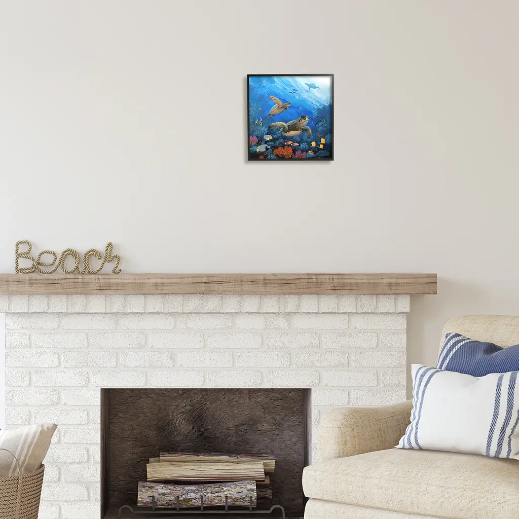 Add dimension to any room with our textured Framed Giclee Artwork. Our framed artwork is securely mounted into a 1.5-inch thick wood grain frame and ready to hang. Frames are available in three alluring styles: black, gray farmhouse and white. In addition, you should check out our oversized options if you want a statement piece. Stupell Wall Art is made in the USA.Features: Dimensions: 12 x 1.5 x 12 FramedFramed Giclee Sizes Include Standard: 12 x 1.5 x 12 Large: 17 x 1.5 x 17 Oversized: 24 x 1.5 x 24Wall Art is Ready to Hang - No Installation or Hardware Needed. For Easy Set Up Lean or Layer Artwork on Shelf or Against Wall.Our giclée prints are carefully mounted on a durable MDF backing, and then perfectly finished in a 1.5 inch thick woodgrain frame. Mounted frame colors include black, gray farmhouse and white. Made In USA.Artwork Relates To: Animal, Reptile, Sea Life, Turtle, Sea Turtle, Fish, Tortoise, Nature, Sea, Water, Reef, UnderwaterDesign by Jon Rattenbury
