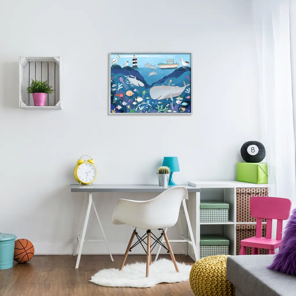 Stupell Underwater Wildlife Kid's Illustration Shark Whale Boat Framed Wall Art - 24 X 30 - Grey