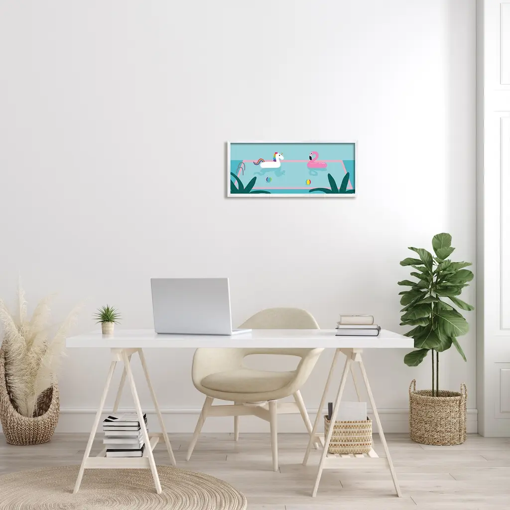 Stupell Unicorn Flamingo Tropical Pool Water Floats Framed Wall Art - Blue - 10 X 24 - White