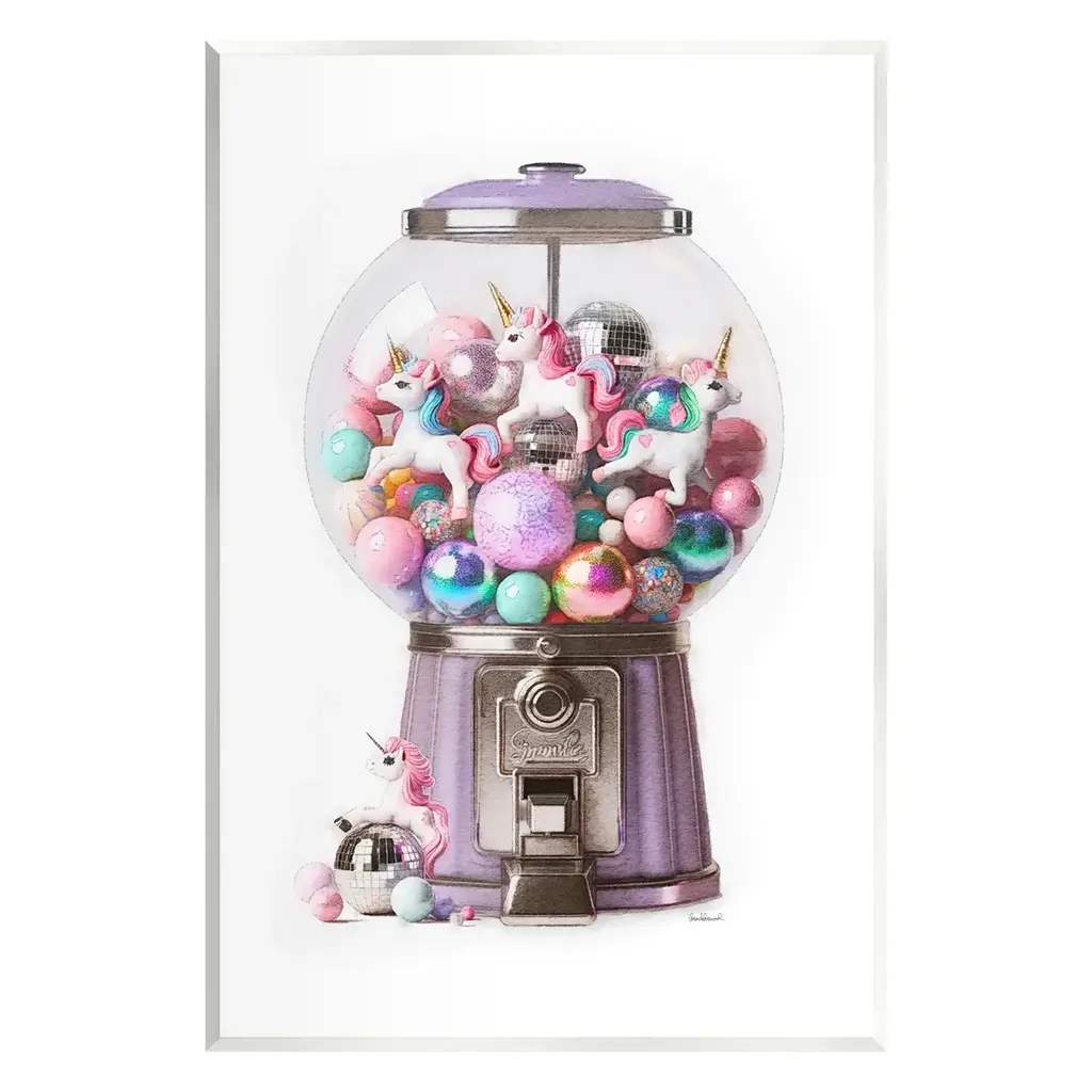Our wall plaques start as high-quality lithograph prints mounted on durable 0.5-inch thick MDF wood. Each piece is hand finished and comes with a fresh layer of white foil on the sides to give it a crisp, clean look. Plaques arrive ready to hang without installation and come with removable plastic corners to keep them from damage in transit. Stupell Wall Art is made in the USA.Features: Dimensions: 10 x 0.5 x 15 InchesWall Plaque Product Sizes Include 10"x15" and 13"x19". All wall plaque products have a 0.5" Depth. Wall Art is Ready to Hang with Hardware Free Hanging. No installation required. For Easy Set Up Lean or Layer Artwork on Shelf or Against Wall.All of our wall plaques start off as high quality lithograph prints that are then mounted on durable 0.5 inch thick MDF wood. Each piece is hand finished and comes with a fresh layer of foil on the sides to give it a crisp clean look. Made In USA.Artwork Relates To: Gumball Machine, Candy, Sweets, Vintage, Retro, Unicorn, PastelDesign by Amanda Greenwood