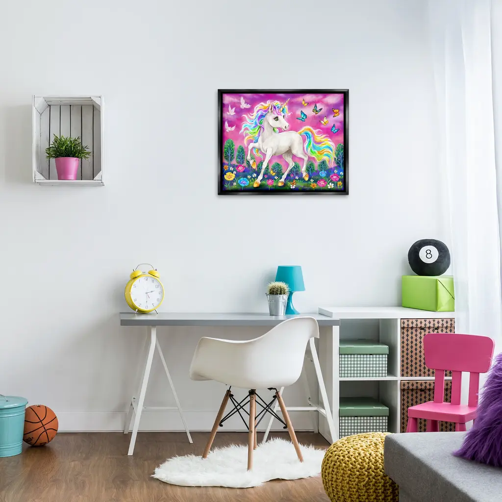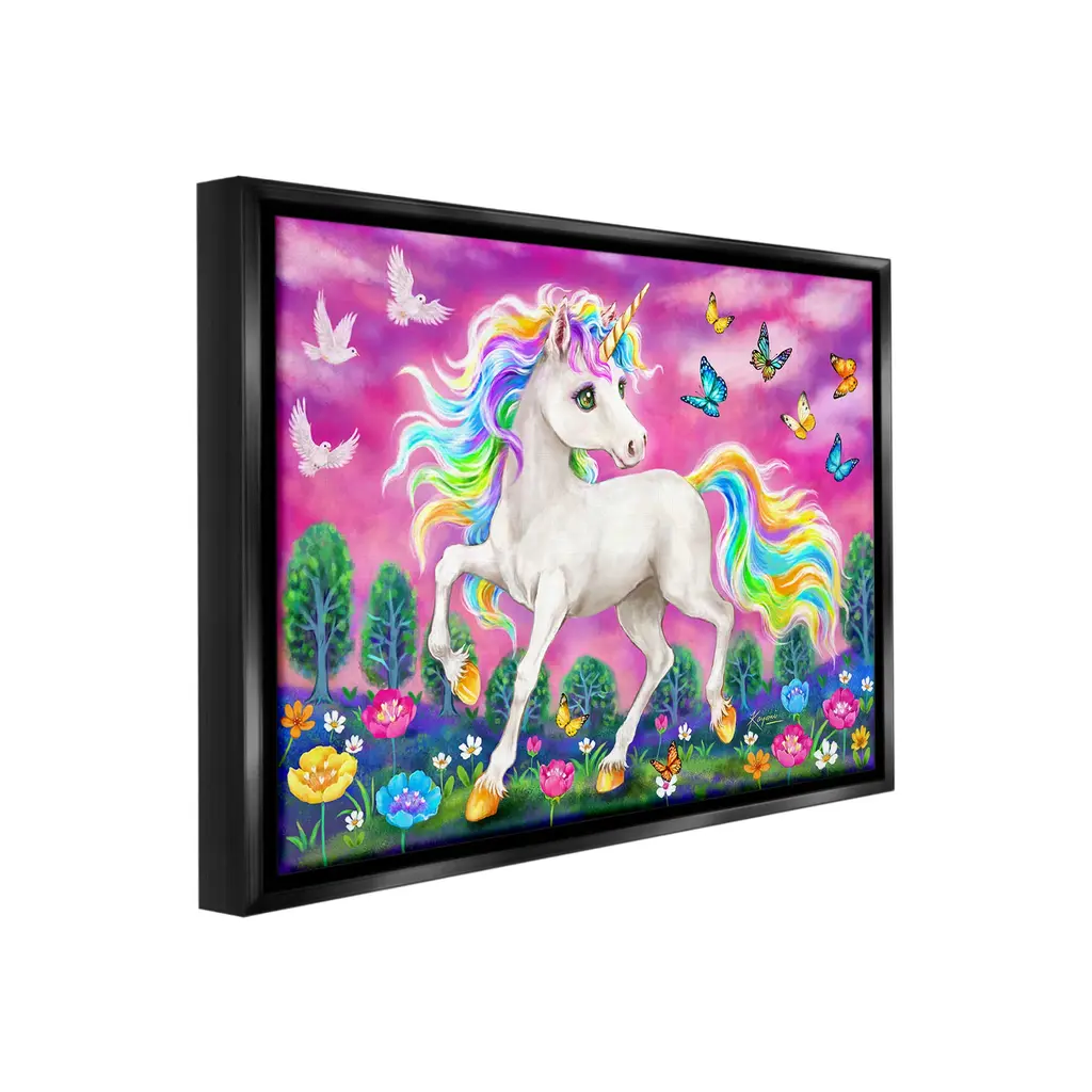 Elevate your home or office to the next level with Stupell Framed Floating Canvas Wall Art. Our premium hand-stretched canvas is mounted securely into a sturdy lightweight frame. The museum-style gap between the wrapped canvas and the box frame gives the illusion of floating artwork. Stupell Wall Art is made in the USA.Features: Dimensions: 21 x 1.7 x 17 Frame, 20 x 1.5 x 16 Canvas ArtFloating Frame Canvas Products are available in sizes 21"x17" and 31"x25". All Floating Frame Canvas Products have a 1.7" Depth.Wall Art is Ready to Hang with Hardware Free Hanging. No Installation required. For Easy Set Up Lean or Layer Artwork on Shelf or Against Wall. Artwork is Permently Fixed into the Frame.Our elevated 1.7" Thick Floating Frame is the perfect complement to our canvas style Wall Art. We use only the highest quality inks in house with industry leading printing solutions. Canvas is hand stretched over a durable wood foundation and then mounted securly into a Modern Box Frame. Made in the USA.Artwork Relates To: Modern, Animal, Horse, Unicorn, Fantasy, Pattern, Floral, Flower, Meadow, Butterfly, BirdDesign by Kayomi Harai
