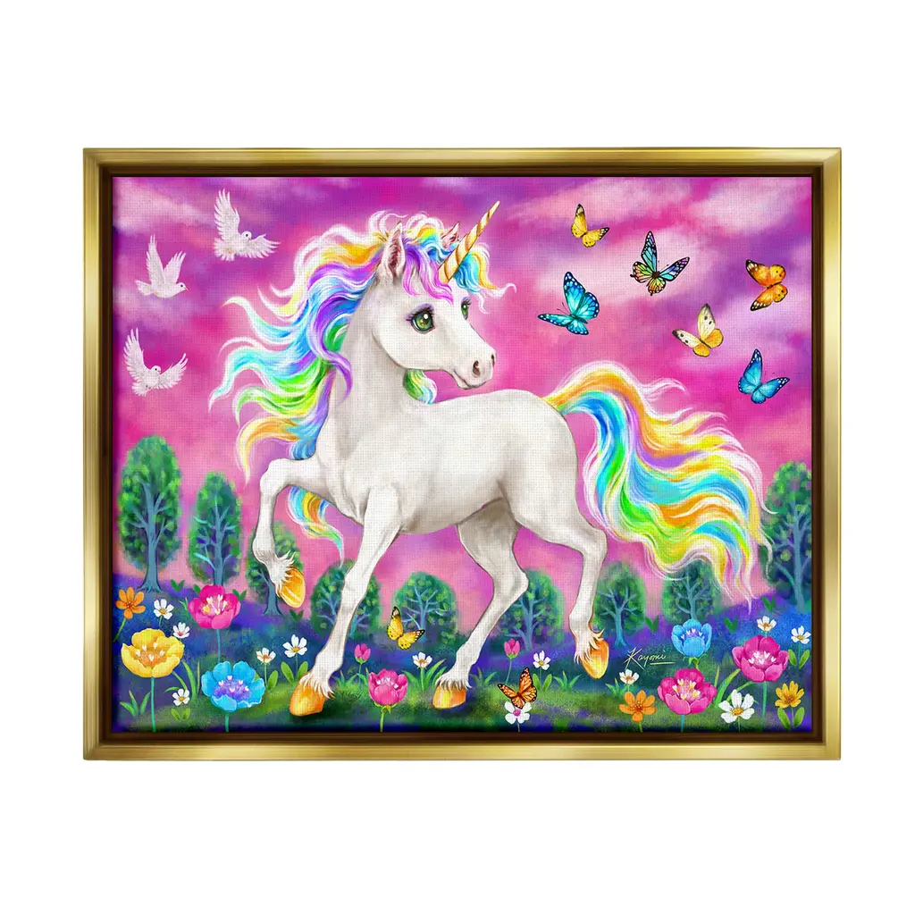 Add dimension to any room with our textured Framed Giclee Artwork. Our framed artwork is securely mounted into a 1.5-inch thick wood grain frame and ready to hang. Frames are available in three alluring styles: black, gray farmhouse and white. In addition, you should check out our oversized options if you want a statement piece. Stupell Wall Art is made in the USA.Features: Dimensions: 14 x 1.5 x 11 FramedFramed Giclee Products are available in the sizes 14"x11", 20"x16" or 30"x24". All Framed Giclee Products have a 1.5" Depth. Wall Art is Ready to Hang with Hardware Free Hanging. No installation required. For Easy Set Up Lean or Layer Artwork on Shelf or Against Wall.Our giclée prints are carefully mounted on a durable MDF backing, and then perfectly finished in a 1.5 inch thick woodgrain frame. Mounted frame colors include black, gray farmhouse and white. Made In USA.Artwork Relates To: Modern, Animal, Horse, Unicorn, Fantasy, Pattern, Floral, Flower, Meadow, Butterfly, BirdDesign by Kayomi Harai