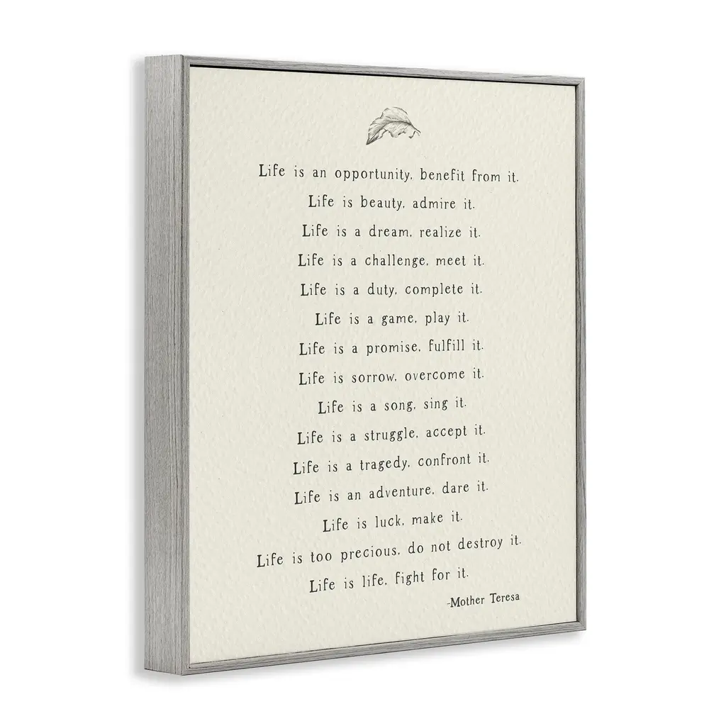 Stupell Uplifting Inspirational Mother Theresa Life Quote Simple Botanical Framed Wall Art - Off-White - 11 X 14 - Grey