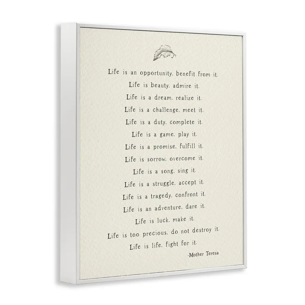 Stupell Uplifting Inspirational Mother Theresa Life Quote Simple Botanical Framed Wall Art - Off-White - 11 X 14 - White