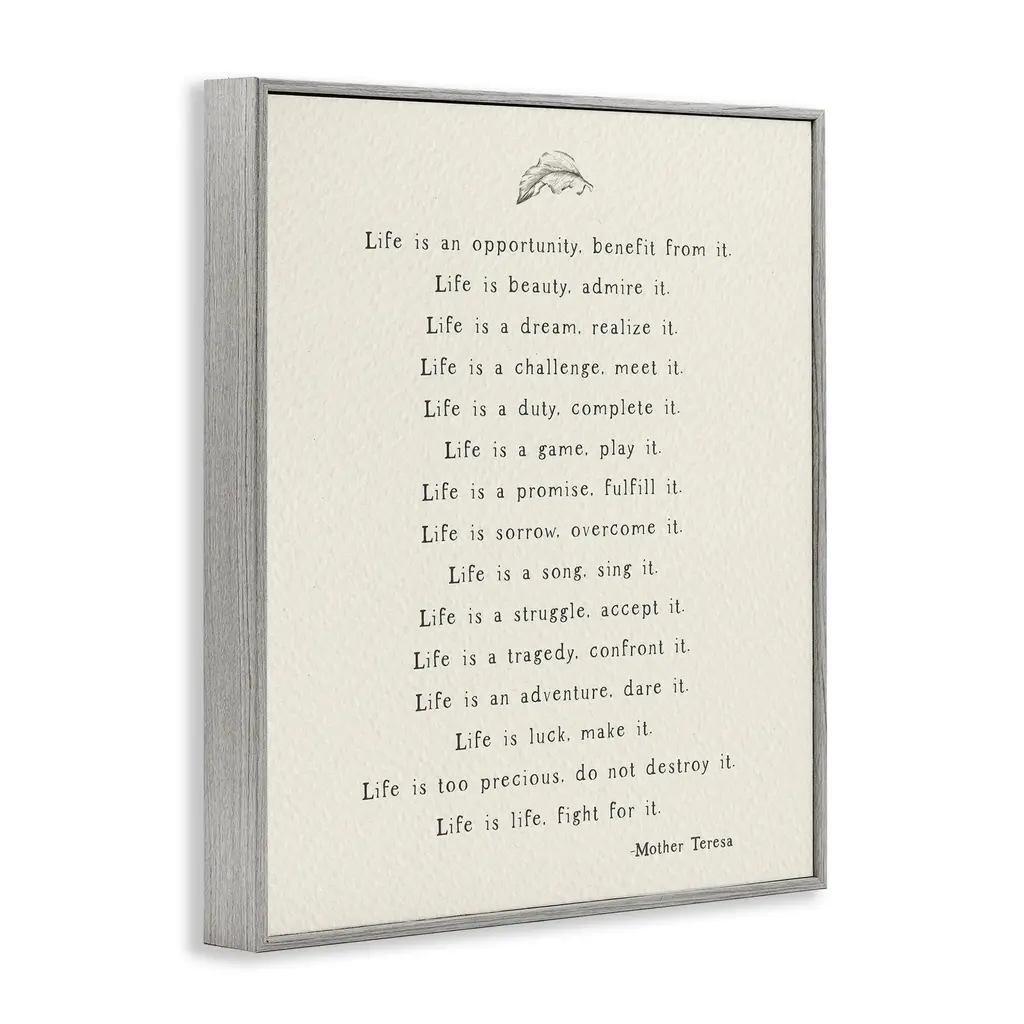Stupell Uplifting Inspirational Mother Theresa Life Quote Simple Botanical Framed Wall Art - Off-White - 16 X 20 - Grey