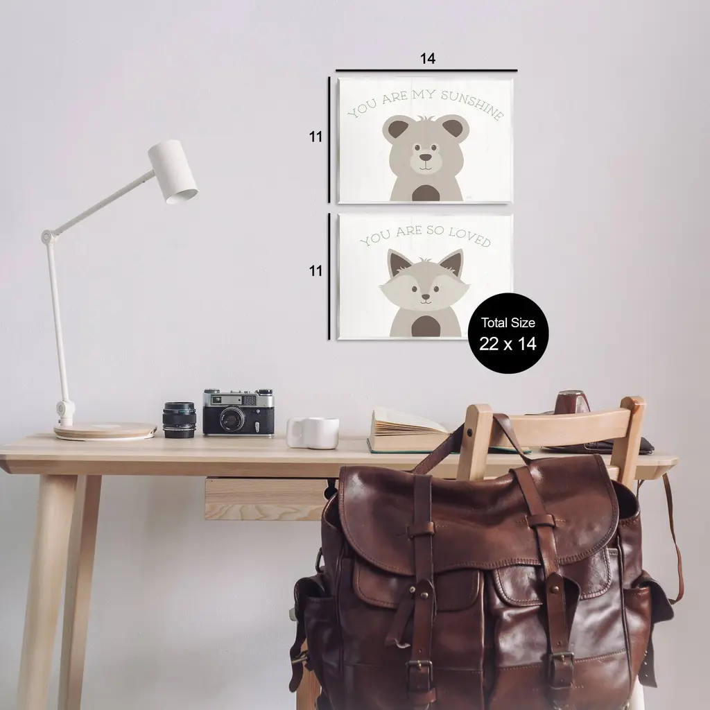 Fill any space with Stupell Wall Art Sets. Our wall plaques start as high-quality lithograph prints mounted on durable 0.5-inch thick MDF wood. Each piece is hand finished and comes with a fresh layer of white foil on the sides to give it a crisp, clean look. Plaques arrive ready to hang without installation and come with removable plastic corners to keep them from damage in transit. Stupell Wall Art is made in the USA.Features: Dimensions: 2 Piece Set, Each Panel is 14 x 0.5 x 11 InchesWall Art is Ready to Hang with Hardware Free Hanging. No installation required. For Easy Set Up Lean or Layer Artwork on Shelf or Against Wall.All of our wall plaques start off as high quality lithograph prints that are then mounted on durable 0.5 inch thick MDF wood. Each piece is hand finished and comes with a fresh layer of foil on the sides to give it a crisp clean look. Made In USA.Artwork Relates To: Animal, Wildlife, Woodland, Phrase, InspirationalDesign by Natalie Carpentieri