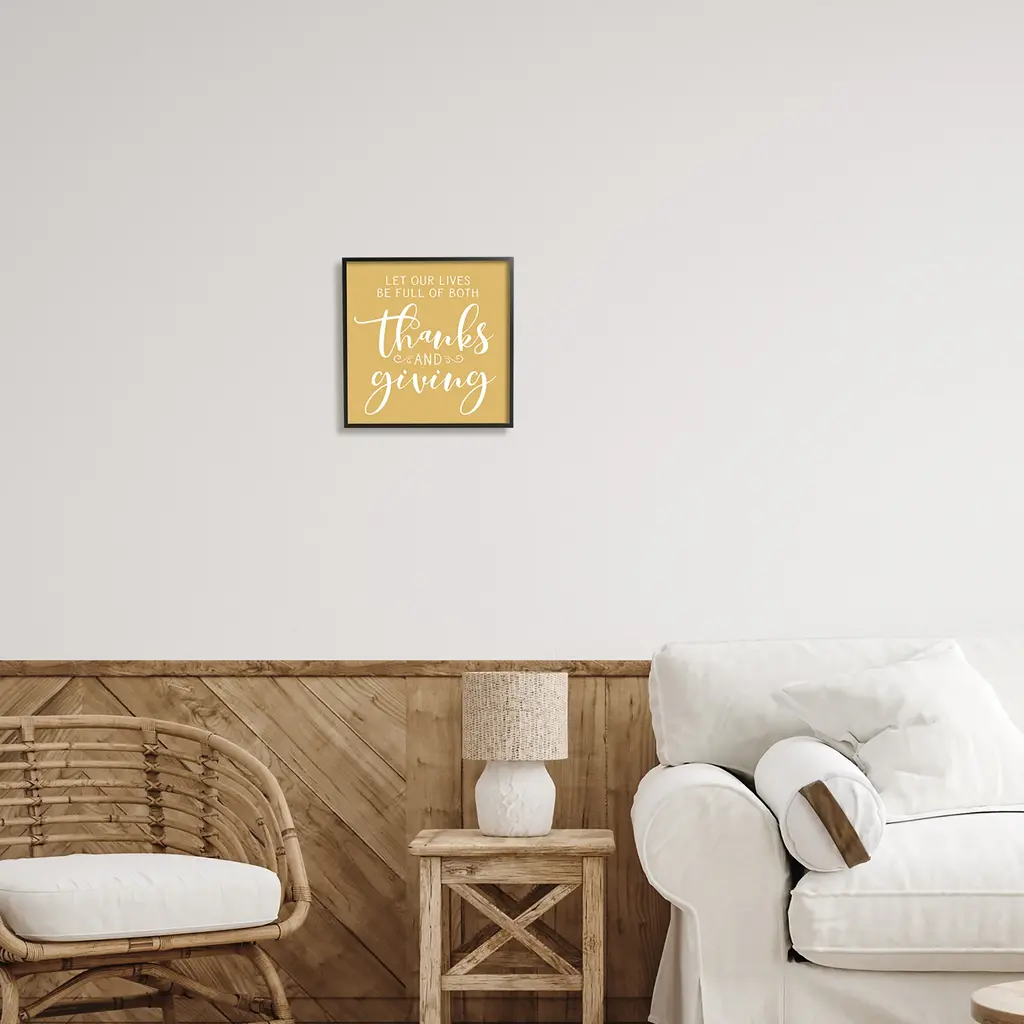 Our Framed Giclee Wall Art adds a touch of class to any space in your home or office. Frames are available in three alluring styles: black, gray farmhouse and white. Our textured artwork will add more depth and dimension to any space. Each piece is mounted with a 1.5 inch thick wood grain frame that is ready to hang! Looking for a statement piece? We have oversized artwork available.Features: Wall Art is Ready to Hang - No Installation or Hardware Needed. For Easy Set Up Lean or Layer Artwork on Shelf or Against Wall.Our giclee prints are carefully mounted on a durable MDF backing, and then perfectly finished in a 1.5 inch thick woodgrain frame. Mounted frame colors include black, gray farmhouse and white. Made In USA.Artwork Relates To: Calligraphy, Typography, Thanksgiving, Seasonal, Fall, AutumnDesign by Lettered and Lined